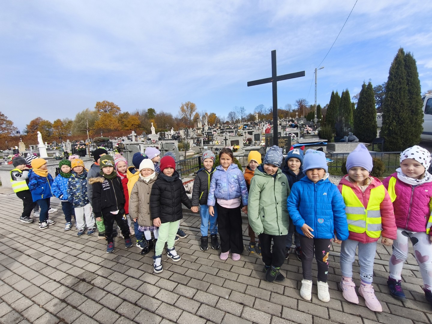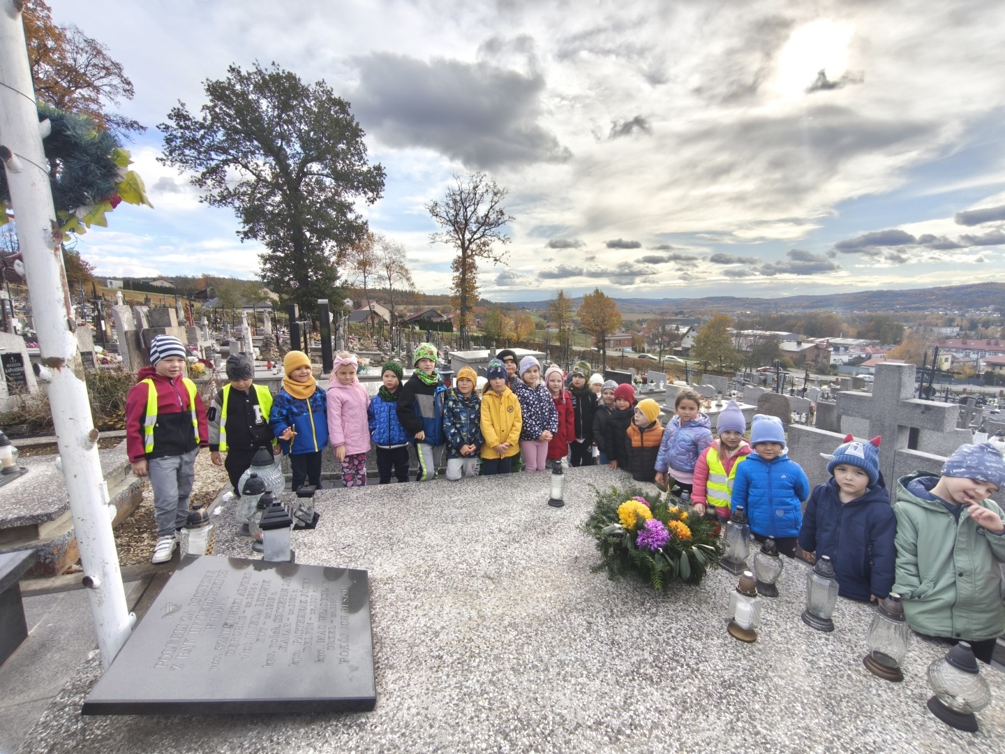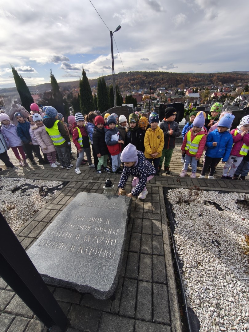 W związku ze zbliżającym się dniem Wszystkich Świętych dzieci z grupy 3 i 8 udały się na cmentarz, aby oddać hołd zmarłym oraz uczcić pamięć osób walczących za wolność i niepodległość naszej Ojczyzny. Podczas wyjścia przedszkolaki złożyły symboliczne znicze na grobach, a opiekunowie przybliżyli im znaczenie tej tradycji oraz wartość pamięci o tych, którzy odeszli. Była to chwila zadumy i refleksji, a jednocześnie ważna lekcja szacunku, patriotyzmu i kultywowania polskich tradycji.