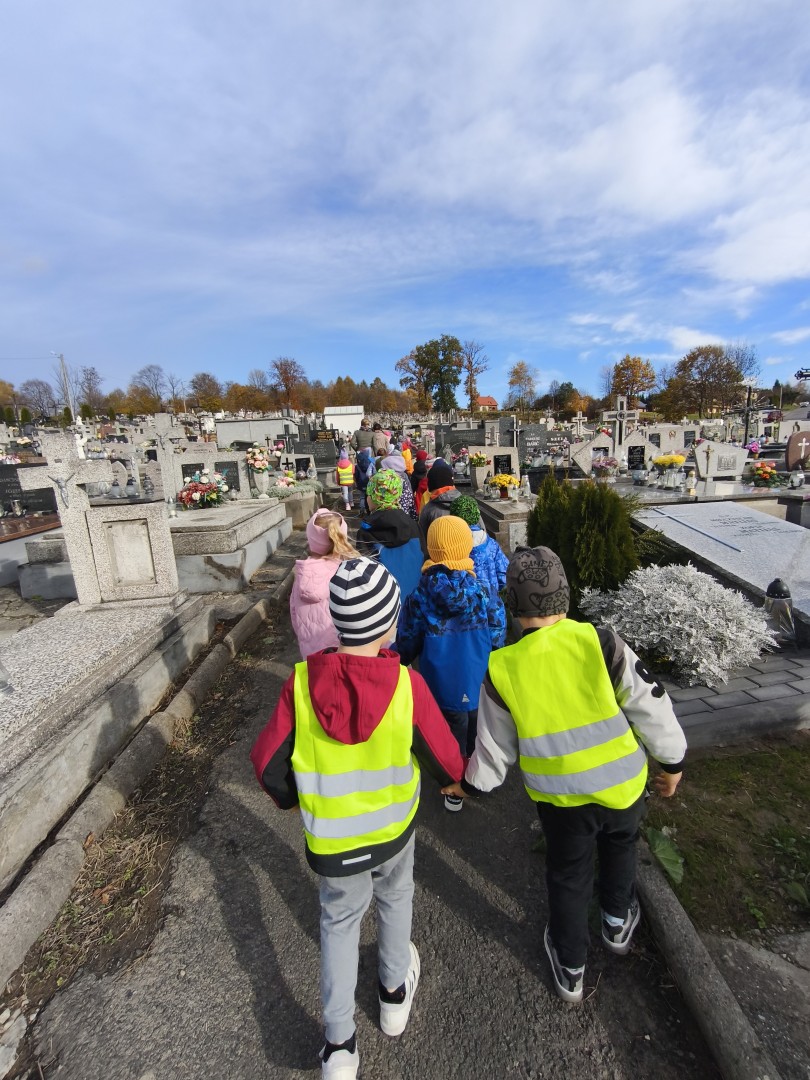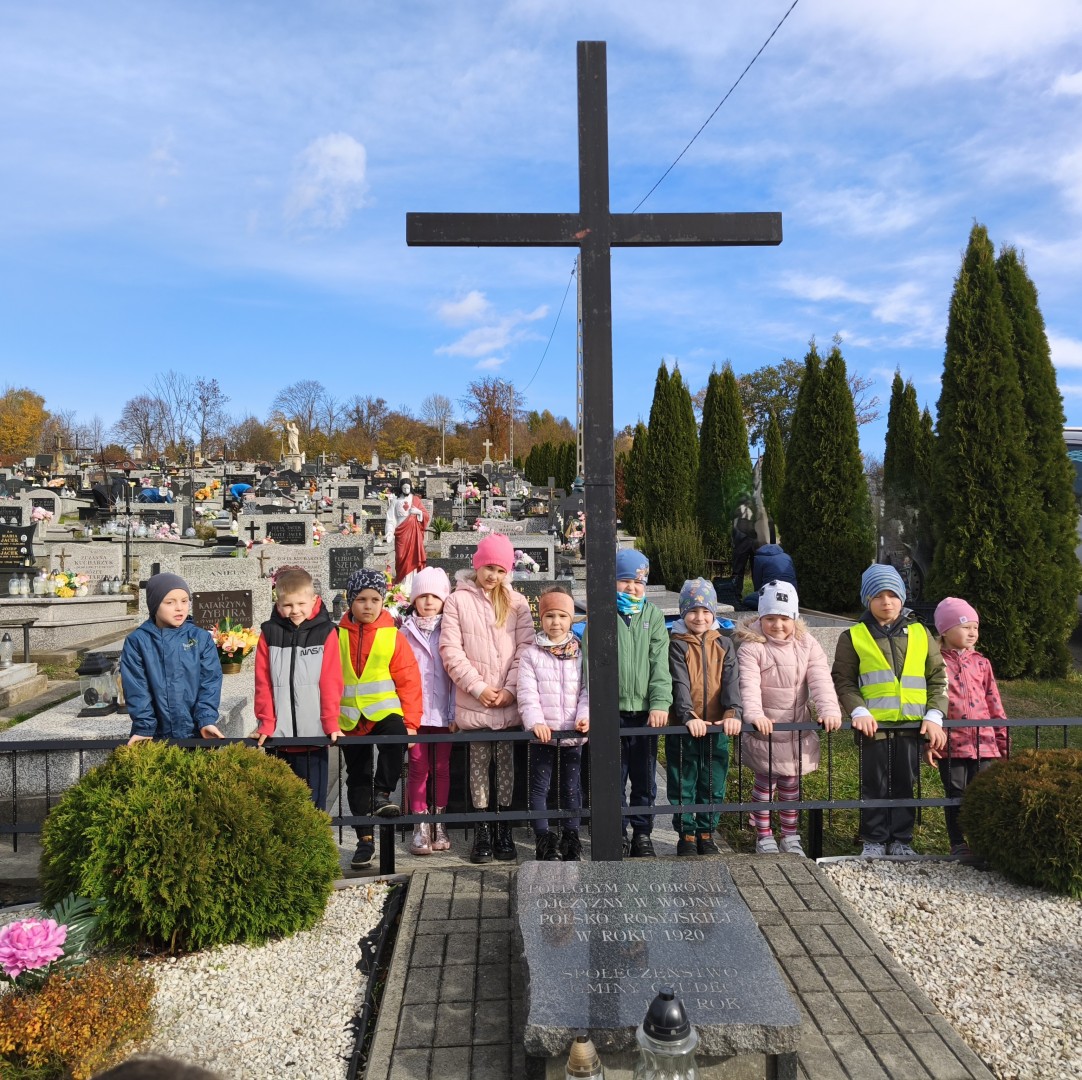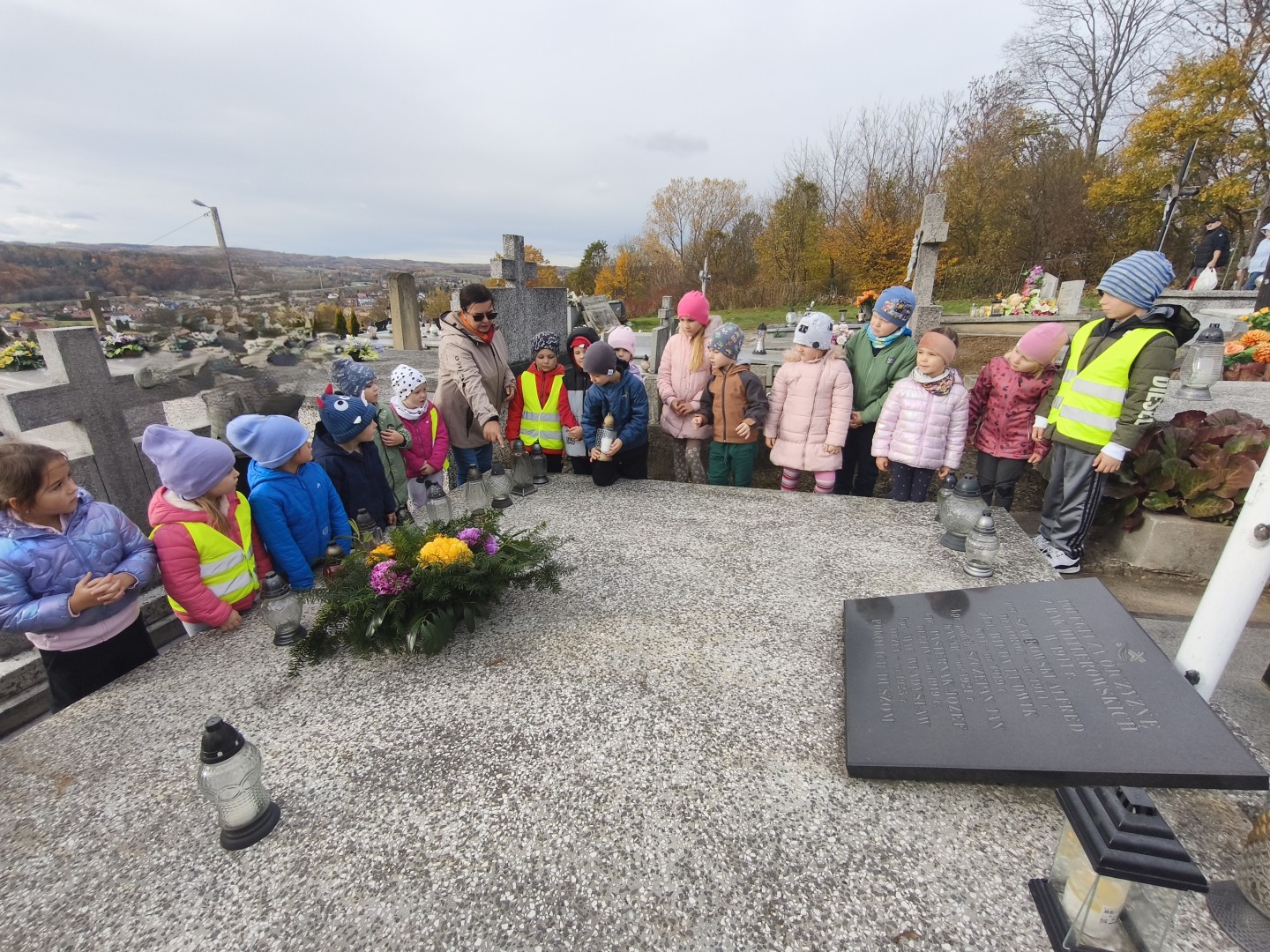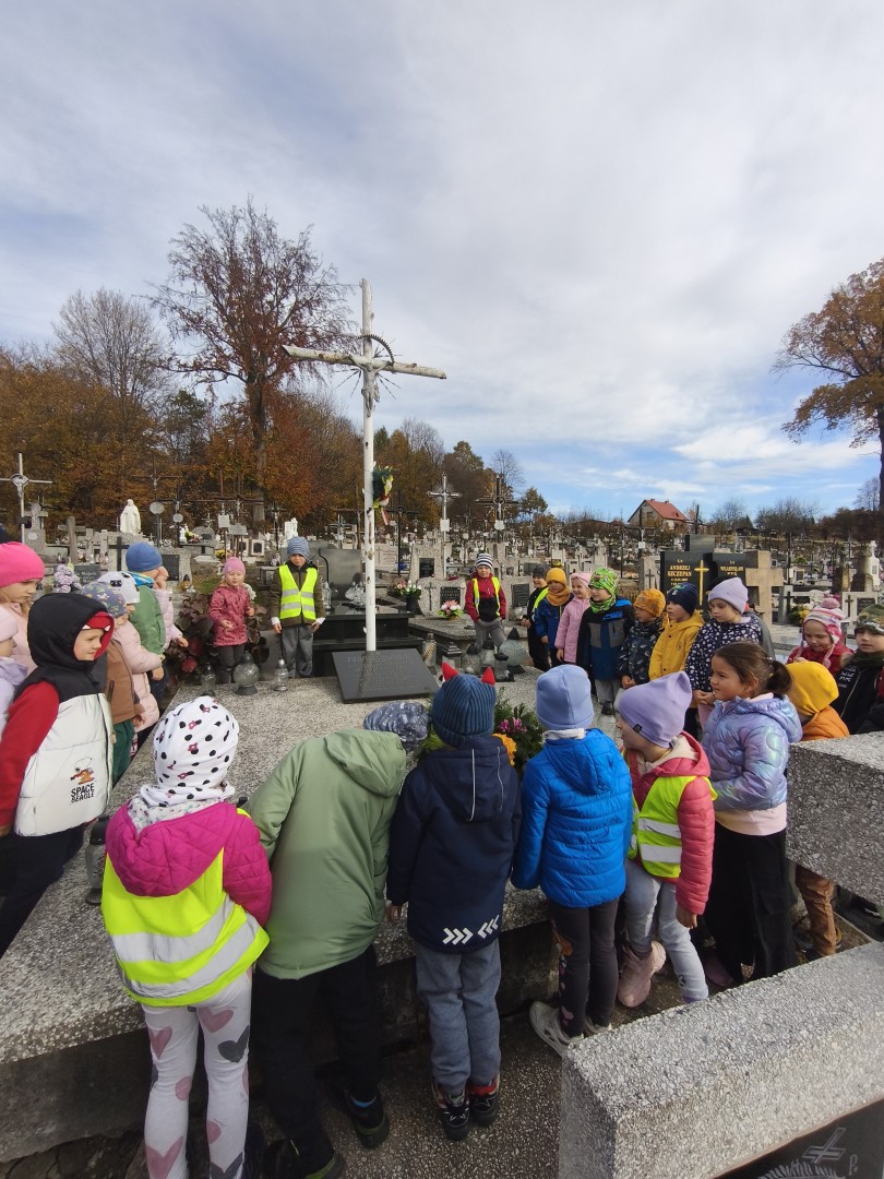 W związku ze zbliżającym się dniem Wszystkich Świętych dzieci z grupy 3 i 8 udały się na cmentarz, aby oddać hołd zmarłym oraz uczcić pamięć osób walczących za wolność i niepodległość naszej Ojczyzny. Podczas wyjścia przedszkolaki złożyły symboliczne znicze na grobach, a opiekunowie przybliżyli im znaczenie tej tradycji oraz wartość pamięci o tych, którzy odeszli. Była to chwila zadumy i refleksji, a jednocześnie ważna lekcja szacunku, patriotyzmu i kultywowania polskich tradycji.
