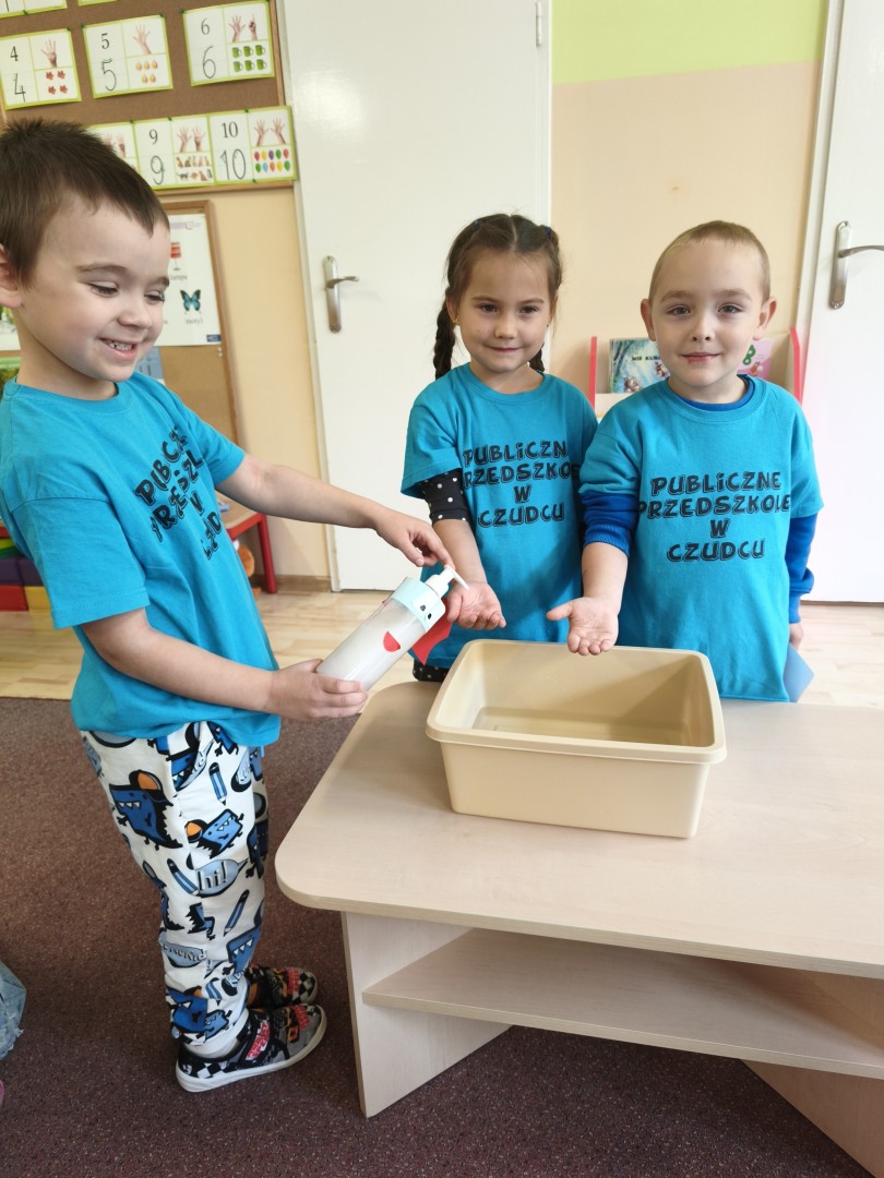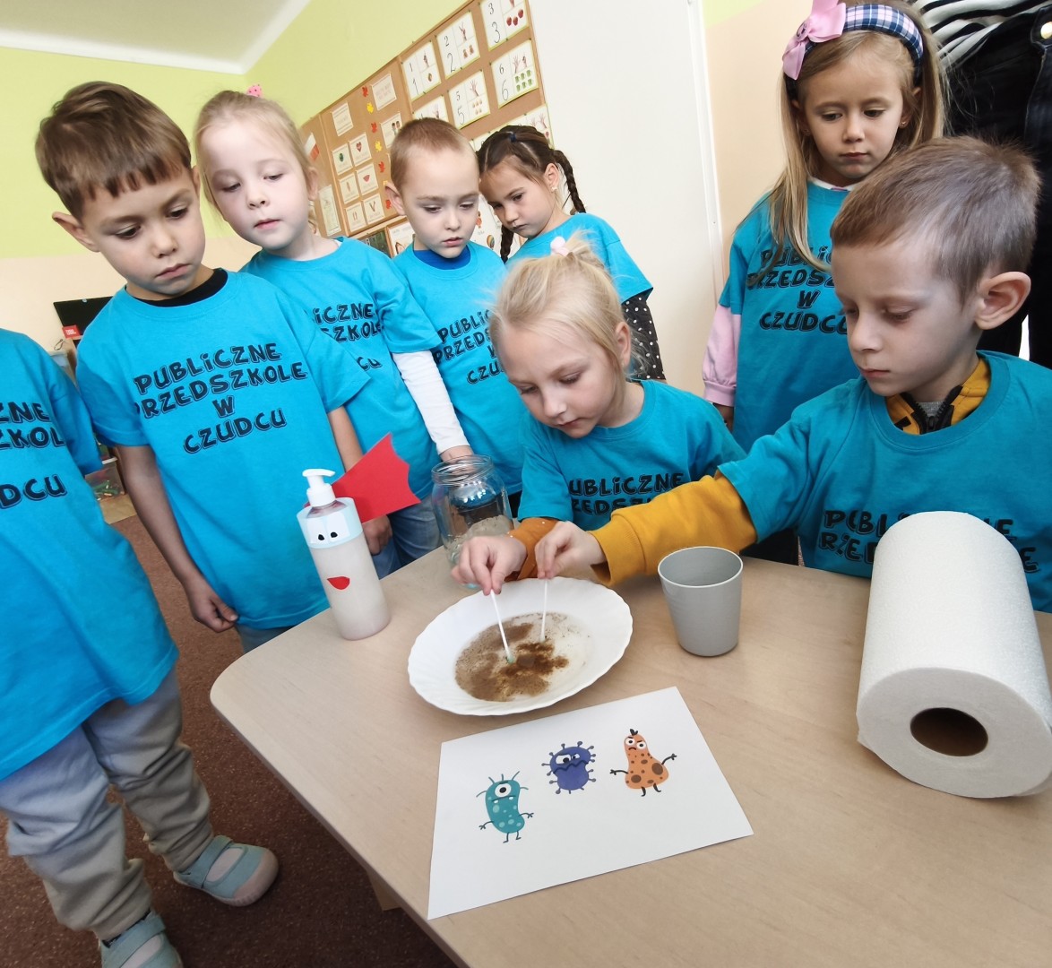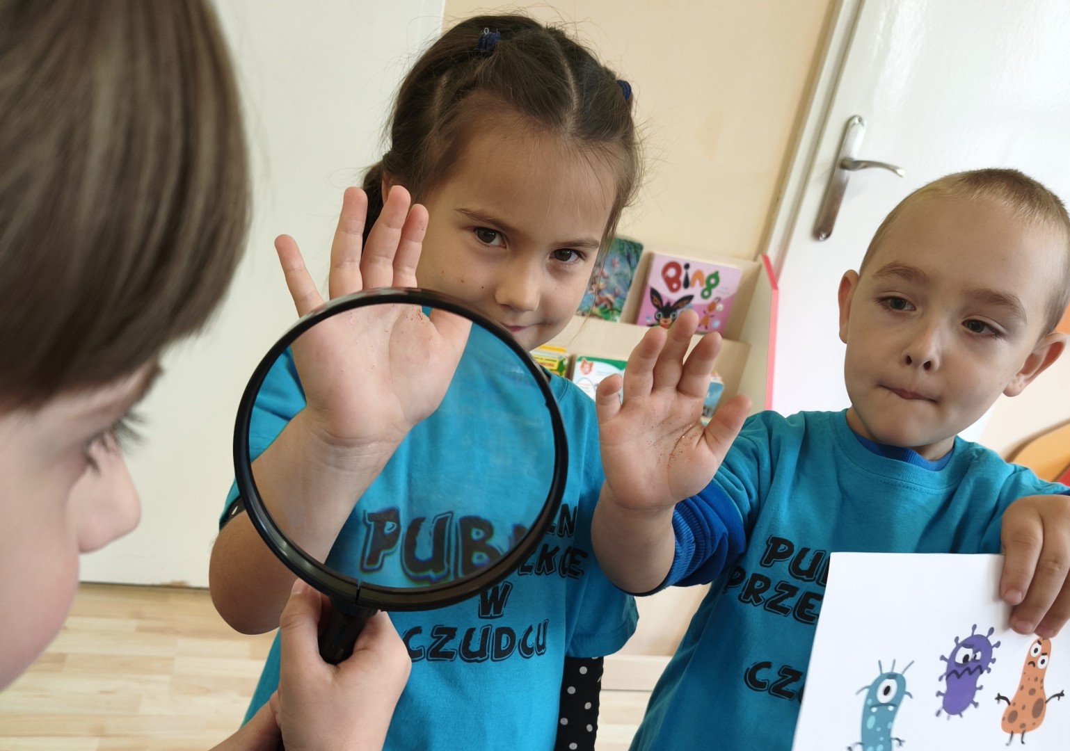 Dnia 16.10.2025r. grupę Muchomorków odwiedził wyjątkowy gość – Pies Łapson z Czyściochowa, z którym przedszkolaki świętowały Światowy Dzień Mycia Rąk! Razem z nim dzieci uczyły się, jak prawidłowo myć ręce. Nasze przedszkolaki na pewno opowiedzą w domu, czego się dowiedziały i jak świetnie się bawiły.