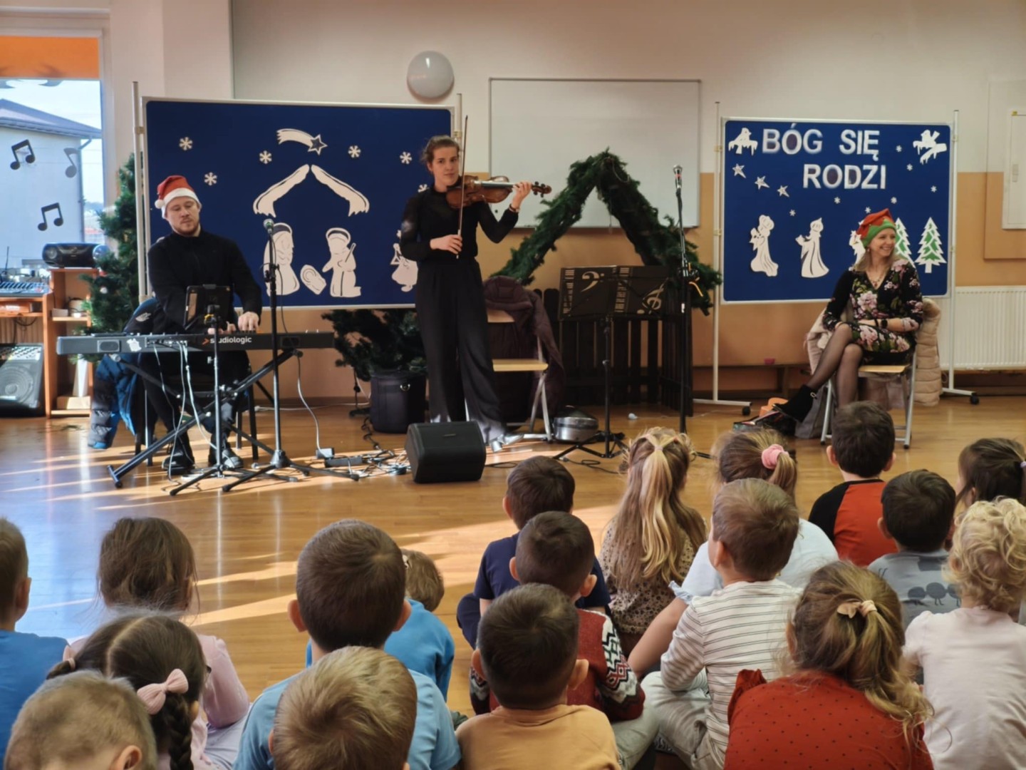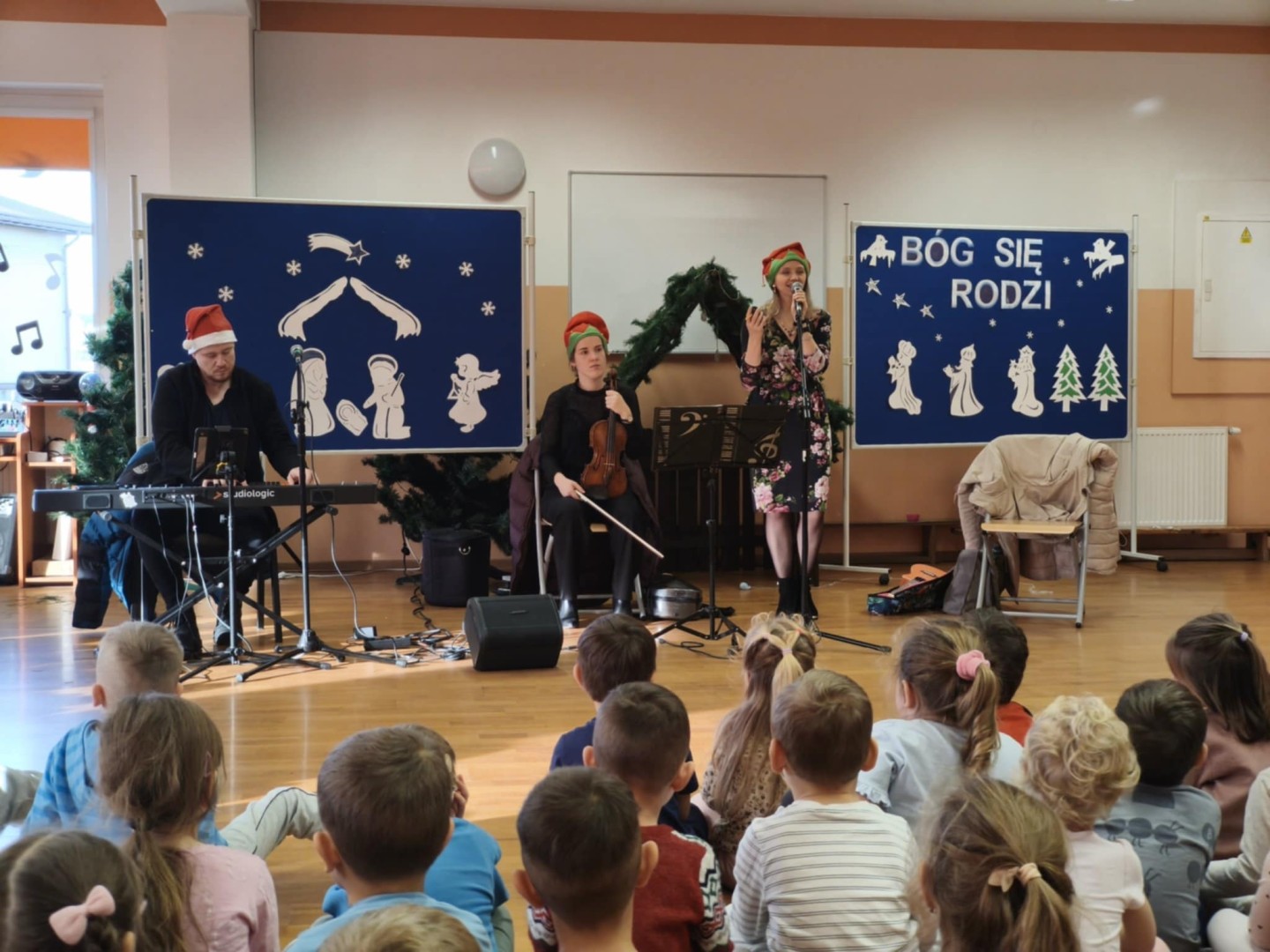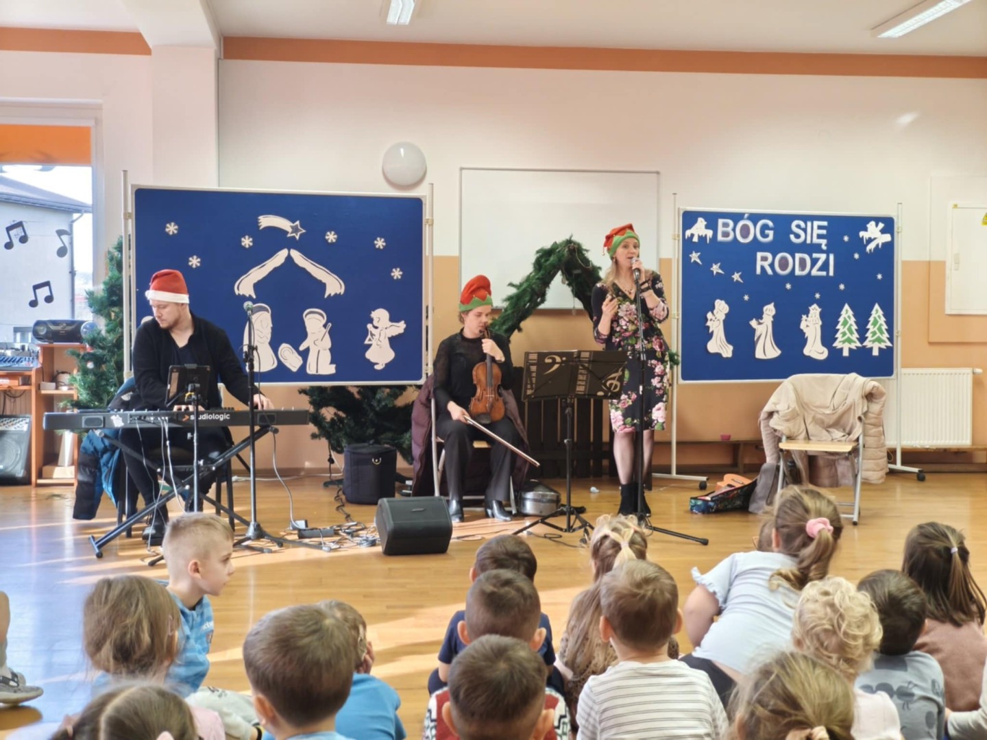 Dnia 17.12.2025r. przedszkolaki wzięły udział w audycji muzycznej pn.: „Podróże Świętego Mikołaja", którą zaprezentowali muzycy z Filharmonii Podkarpackiej. Tym razem nasi goście zabrali nas w podróż po różnych zakątkach świata, gdzie podobnie jak w Polsce śpiewa się różne piosenki świąteczne. Na naszym magicznym spotkaniu nie zabrakło także polskich kolęd i pastorałek, które nasi goście zaśpiewali wspólnie z dziećmi. To było spotkanie pełne świątecznej magii oraz radości.