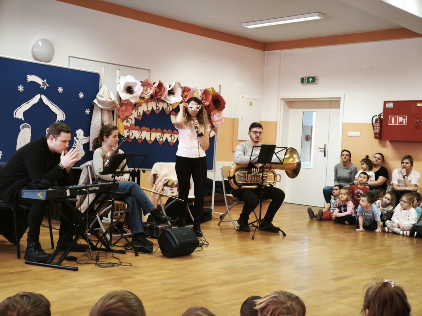 W styczniu dzieci wzięły udział w audycji Filharmonii Podkarpackiej pt. „Karnawał w dobrym stylu – zatańcz z nami”. Było to niezwykłe, bajkowe spotkanie pełne muzyki, tańca i ciekawostek o dawnych tradycjach karnawałowych. Przedszkolaki przeniosły się w świat minionych epok, poznając różne tańce oraz zwyczaje związane z karnawałem.