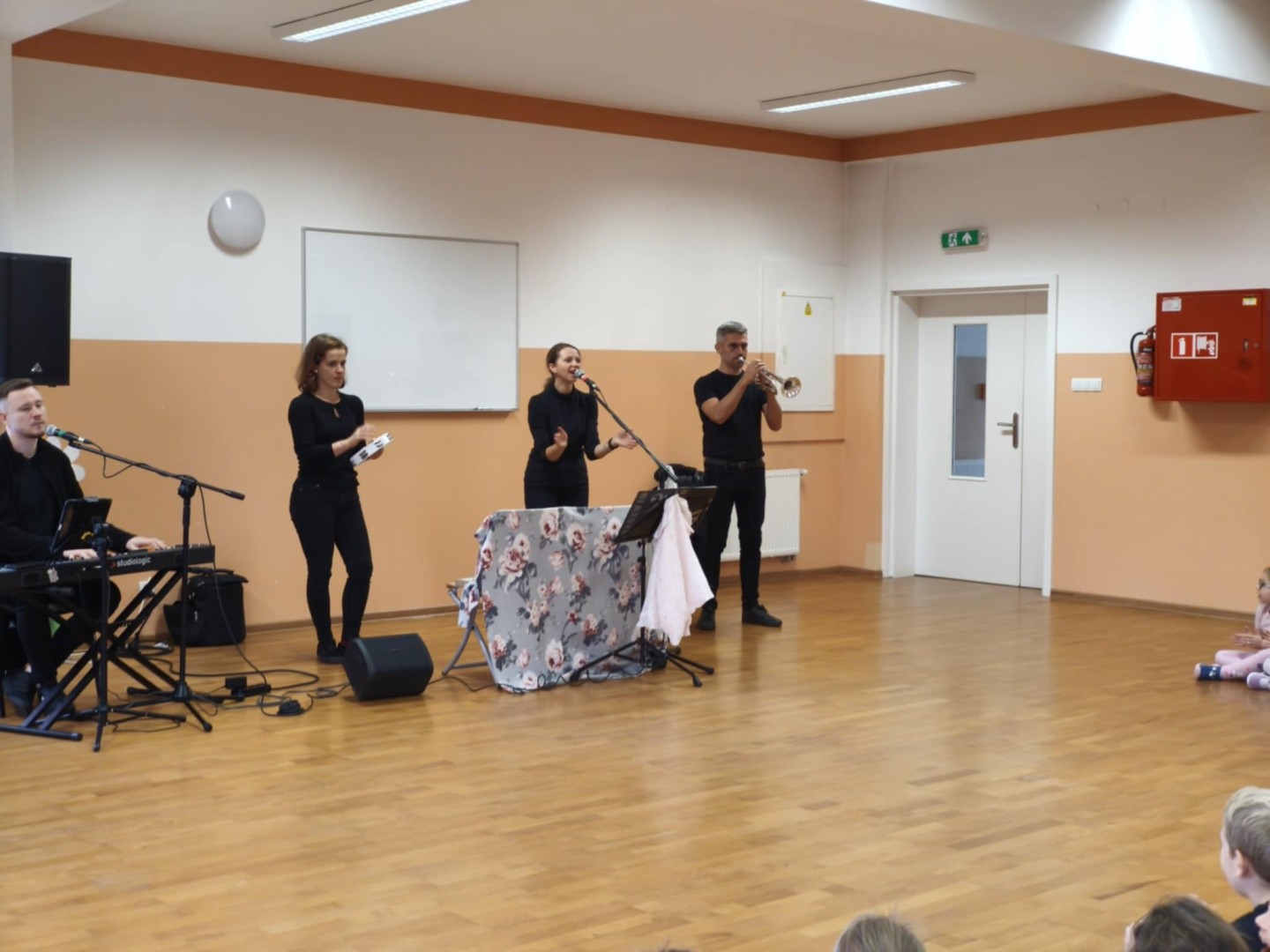 Dnia 15.10.2025r. w naszym przedszkolu odbyło się kolejne spotkanie z muzykami Filharmonii Podkarpackiej pn.: „Bajki grajki i słuchowiska dla dzieci." Przedszkolaki przeniosły się w magiczny świat bajek grajek i słuchowisk. To była wspaniała zabawa, która rozwijała wyobraźnię, słuch i wrażliwość muzyczną naszych małych słuchaczy.