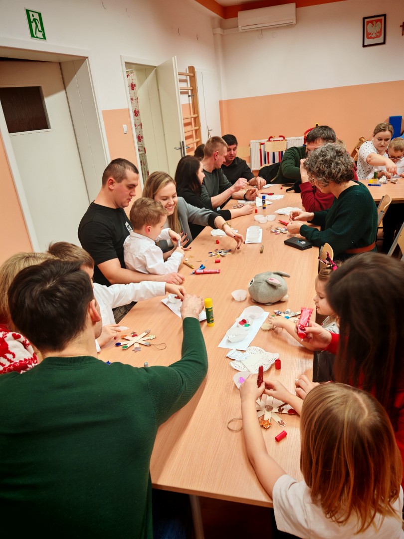 W środę 17 grudnia w naszym przedszkolu powitaliśmy wyjątkowych gości, rodziców dzieci z grupy 6. Przedszkolaki zaprezentowały utwory i tańce o tematyce świątecznej. Po występie był mamy poczęstunek oraz warsztaty. Dzieci wraz z rodzicami przygotowały aniołka oraz gwiazdkę wykorzystując świąteczne elementy. Był to wyjątkowy czas pełen radości, uśmiechu i wspólnych chwil spędzonych w świątecznej atmosferze.