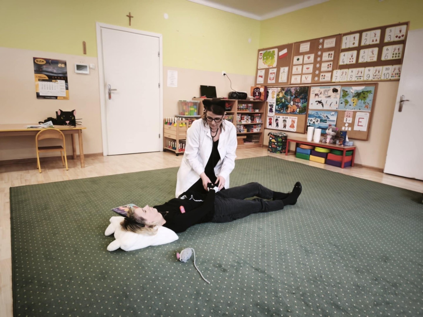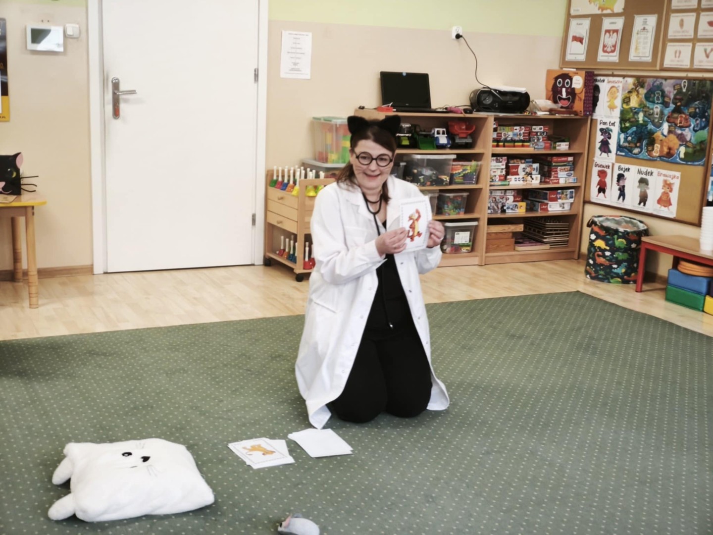 Z okazji zbliżającego się Dnia Kota nasze przedszkolaki miały przyjemność obejrzeć inscenizację wiersza Stanisława Jachowicza pt.: „Chory kotek”. Przedstawienie było nie tylko źródłem radości, ale także cenną lekcją o zdrowiu i dbaniu o siebie. Dzieci z zainteresowaniem śledziły przygody bohatera i wyciągnęły z nich wiele mądrych wniosków. Na koniec przedszkolaki rozwiązywały zagadki oraz wykonywały kocie wygibasy. Serdecznie dziękujemy Paniom z Gminnej Biblioteki Publicznej w Czudcu za miło spędzony czas oraz słodkie upominki.