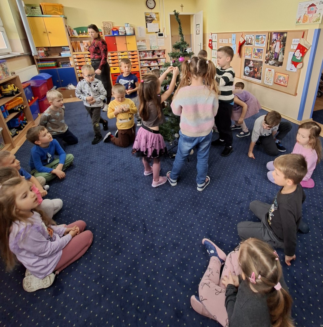 Podczas wspólnego ubierania choinek dzieci rozmawiały o tradycjach świątecznych, Mikołaju oraz o tym, jak wyglądają przygotowania w ich domach. Nie zabrakło także radosnego śpiewania świątecznych piosenek, które wprowadziły wszystkich w magiczny nastrój.