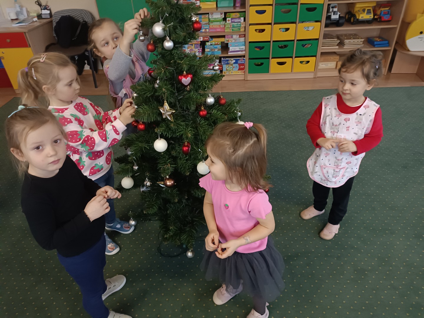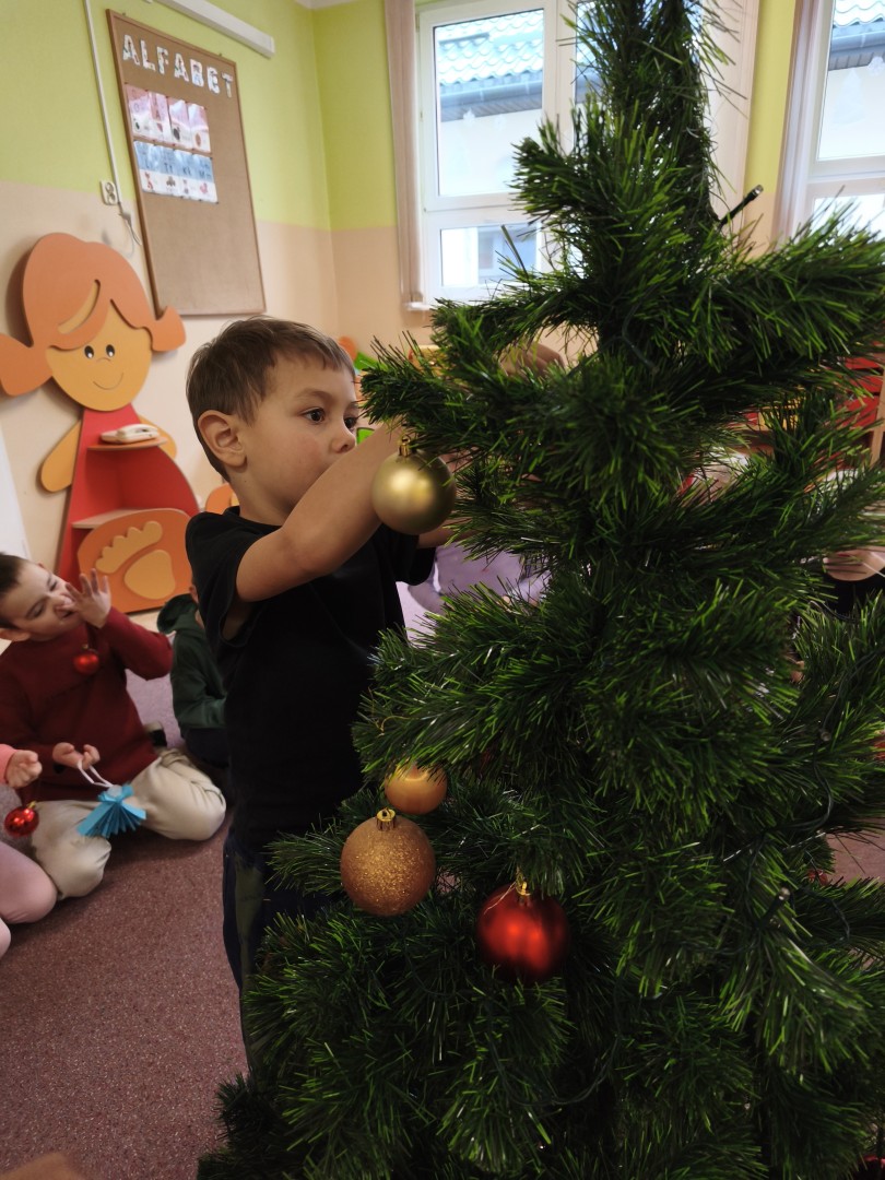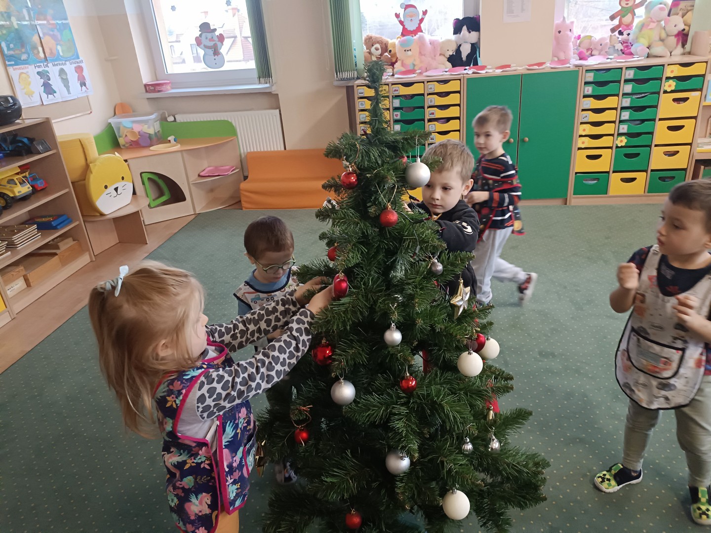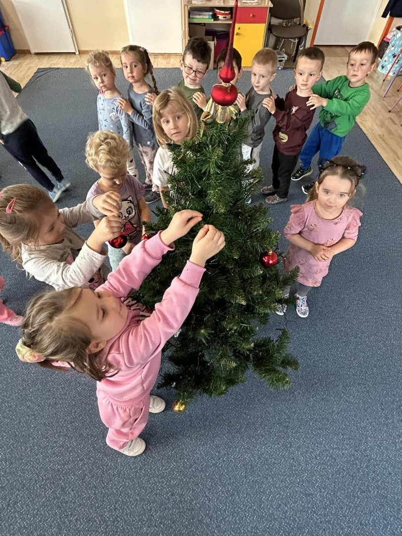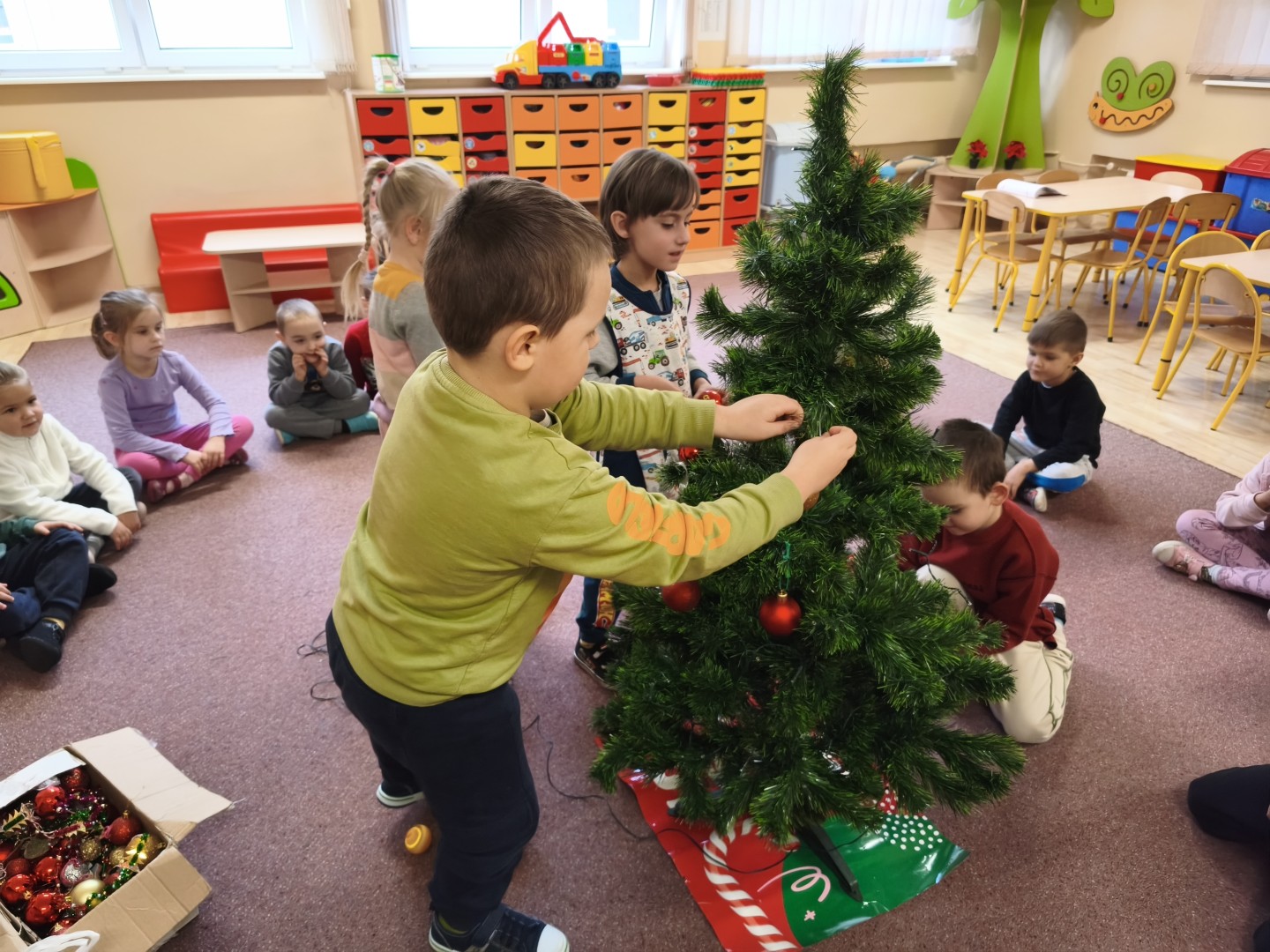 W naszym przedszkolu rozpoczął się wyjątkowy, pełen radości i oczekiwania czas przygotowań do Świąt Bożego Narodzenia. Wszystkie grupy z zaangażowaniem i uśmiechem dekorowały swoje choinki, tworząc w salach prawdziwie świąteczny klimat.