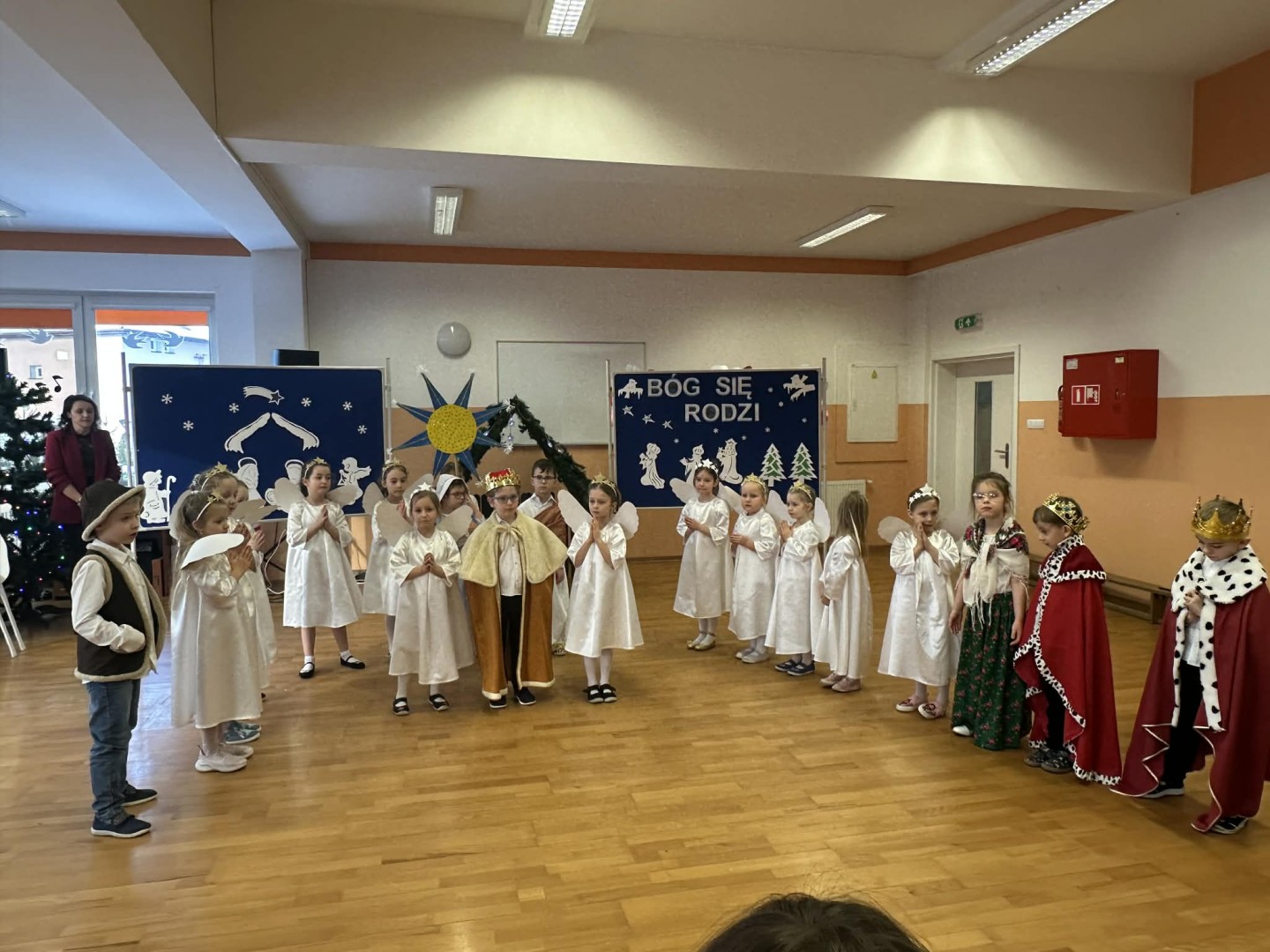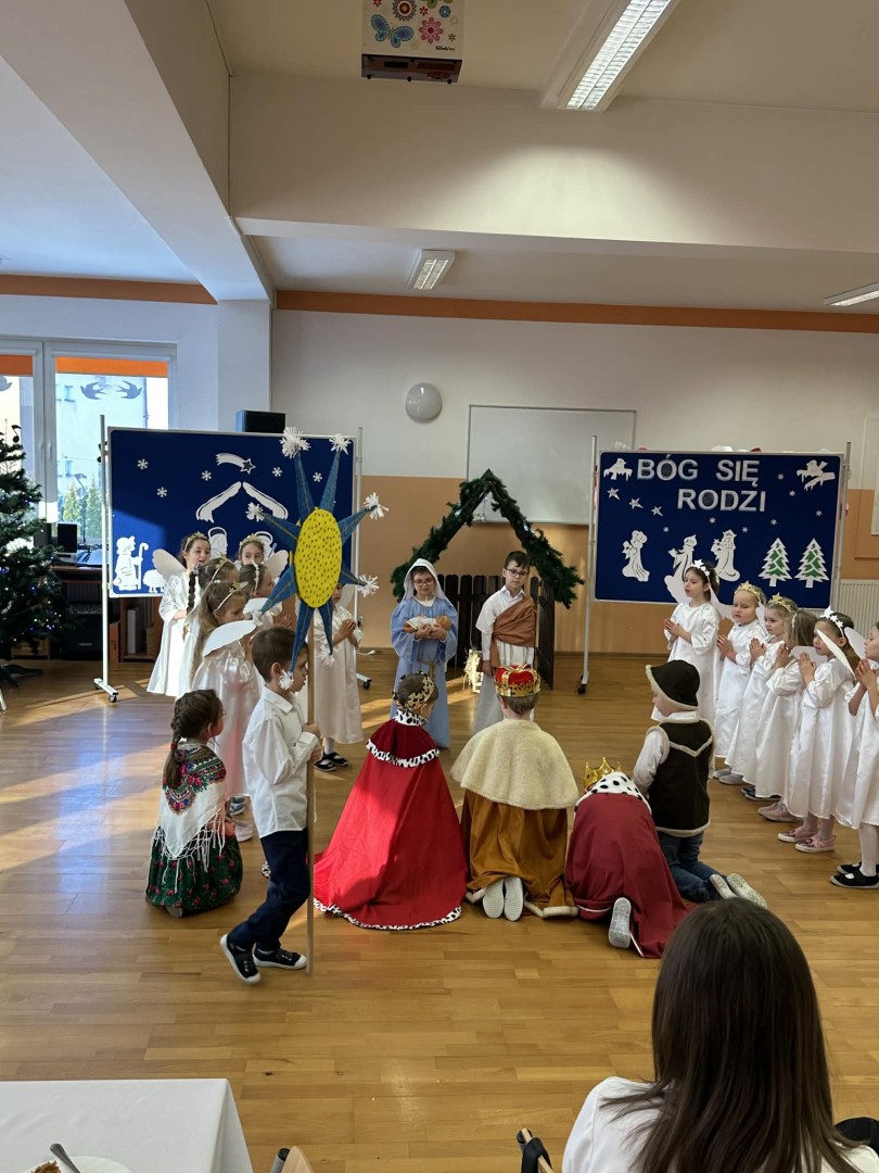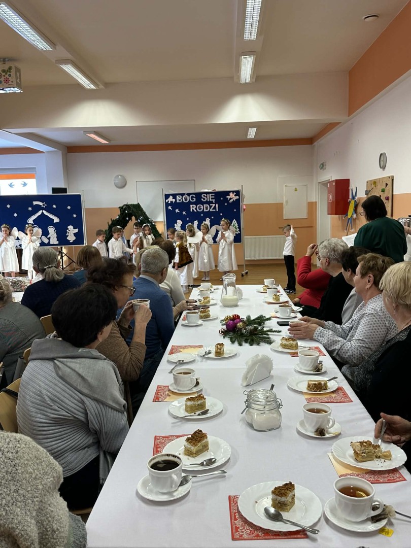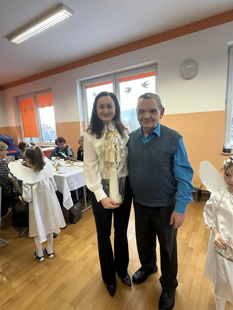 W okresie świątecznym w naszym przedszkolu odbyła się wyjątkowa uroczystość bożonarodzeniowa- występ jasełkowy inspirowany bajką pt.: „Dziewczynka z zapałkami”, połączony ze wspólnym kolędowaniem. W wydarzeniu udział wzięły dzieci 6-letnie z gr. 7, które z wielkim zaangażowaniem i wrażliwością zaprezentowały wzruszającą opowieść o dziewczynce, przypominając wszystkim o takich wartościach jak: dobroć, empatia, miłość i potrzeba niesienia pomocy innym. Przedstawienie wprowadziło zgromadzonych gości w świąteczny nastrój i skłoniło do refleksji. Uroczystość została zorganizowana w ramach współpracy przedszkola z Klubem Seniora, seniorami związanymi z naszym przedszkolem oraz Domem Pomocy Społecznej w Babicy. Szczególnym momentem spotkania było wspólne kolędowanie, które połączyło dzieci i seniorów, tworząc atmosferę bliskości, radości i międzypokoleniowej wspólnoty. Na zakończenie dzieci wręczyły zaproszonym gościom drobne upominki jako wyraz wdzięczności za obecność, ciepłe słowa i wspólnie spędzony czas. Spotkanie zakończyło się serdecznymi rozmowami oraz wzajemnymi życzeniami świątecznymi. Serdecznie dziękujemy wszystkim gościom za przybycie, wspólne kolędowanie oraz stworzenie niezwykle ciepłej i rodzinnej atmosfery. To spotkanie na długo pozostanie w naszej pamięci.