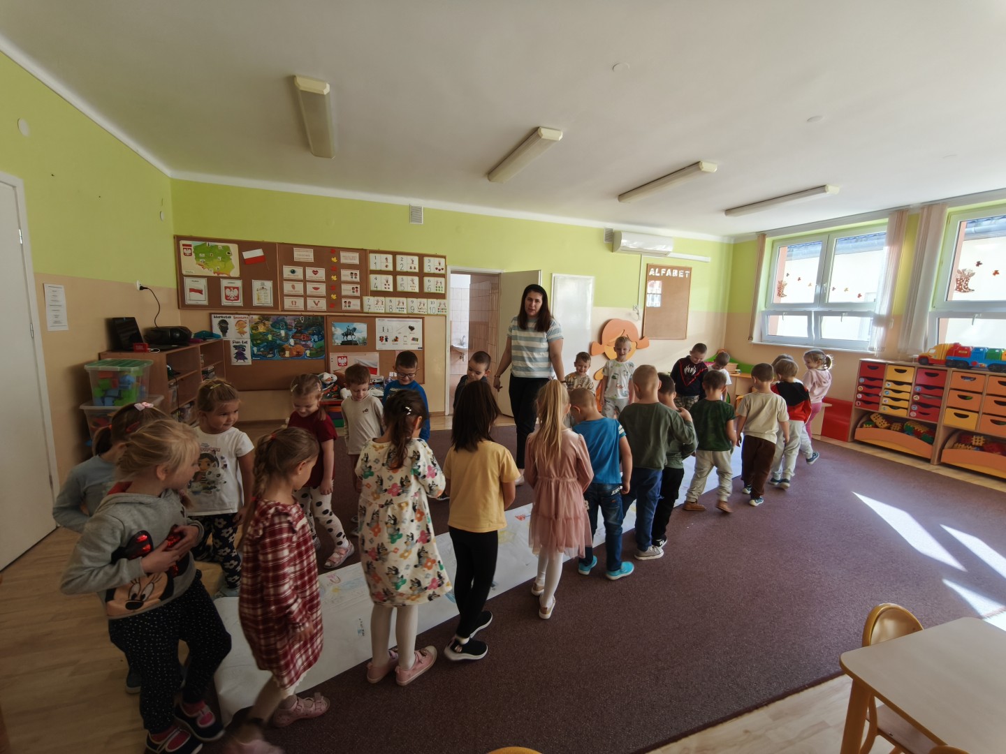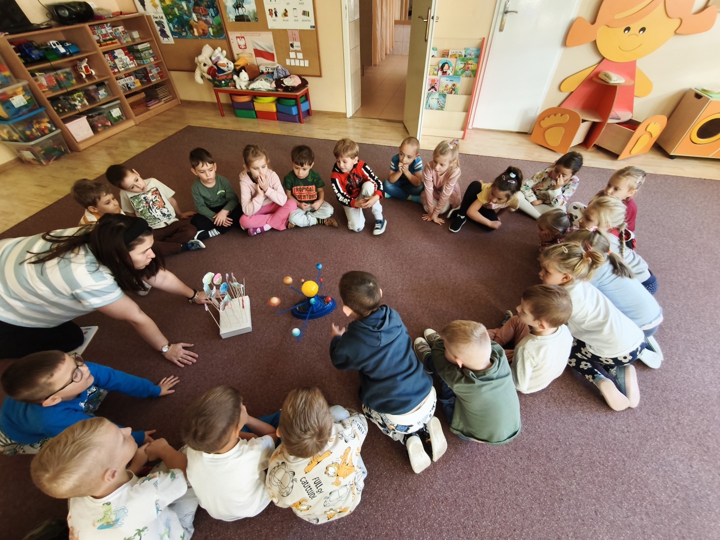 Pani Marta Szaro, która jest psychologiem w naszym przedszkolu odwiedziła grupę Muchomorków, aby zorganizować spotkanie poświęcone relacjom i granicom w kontaktach z innymi. Dzieci, poprzez zabawy i rozmowy, uczyły się rozpoznawać emocje, wyrażać swoje potrzeby oraz szanować granice innych osób. Zajęcia przebiegły w miłej i pełnej zaangażowania atmosferze.