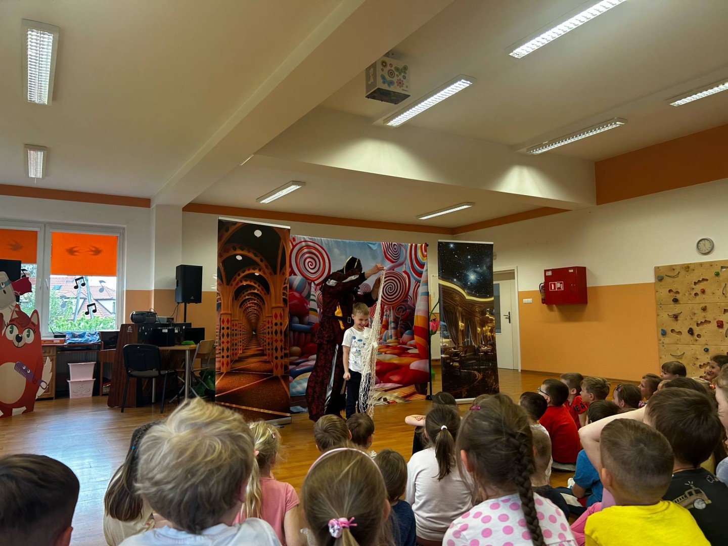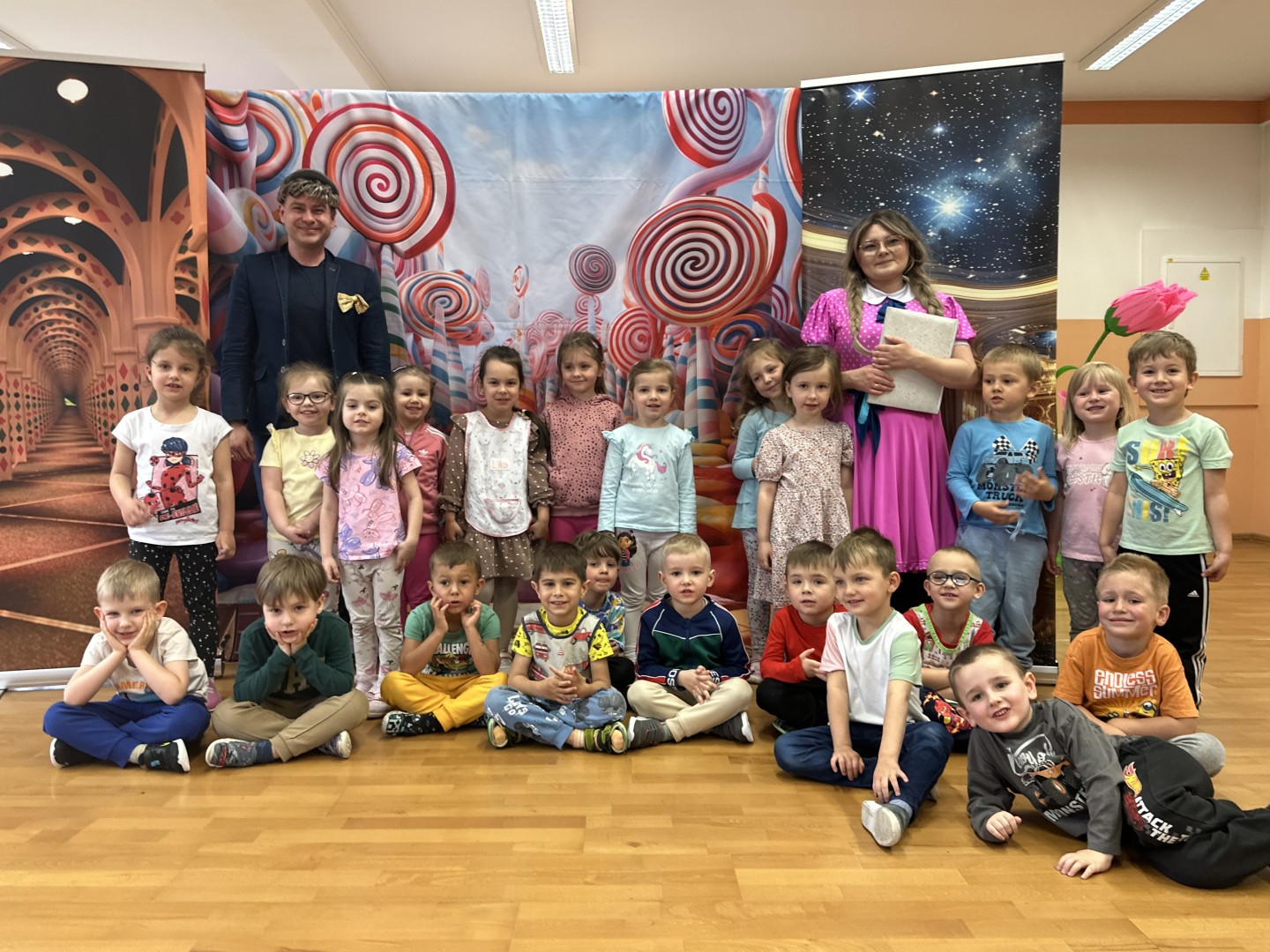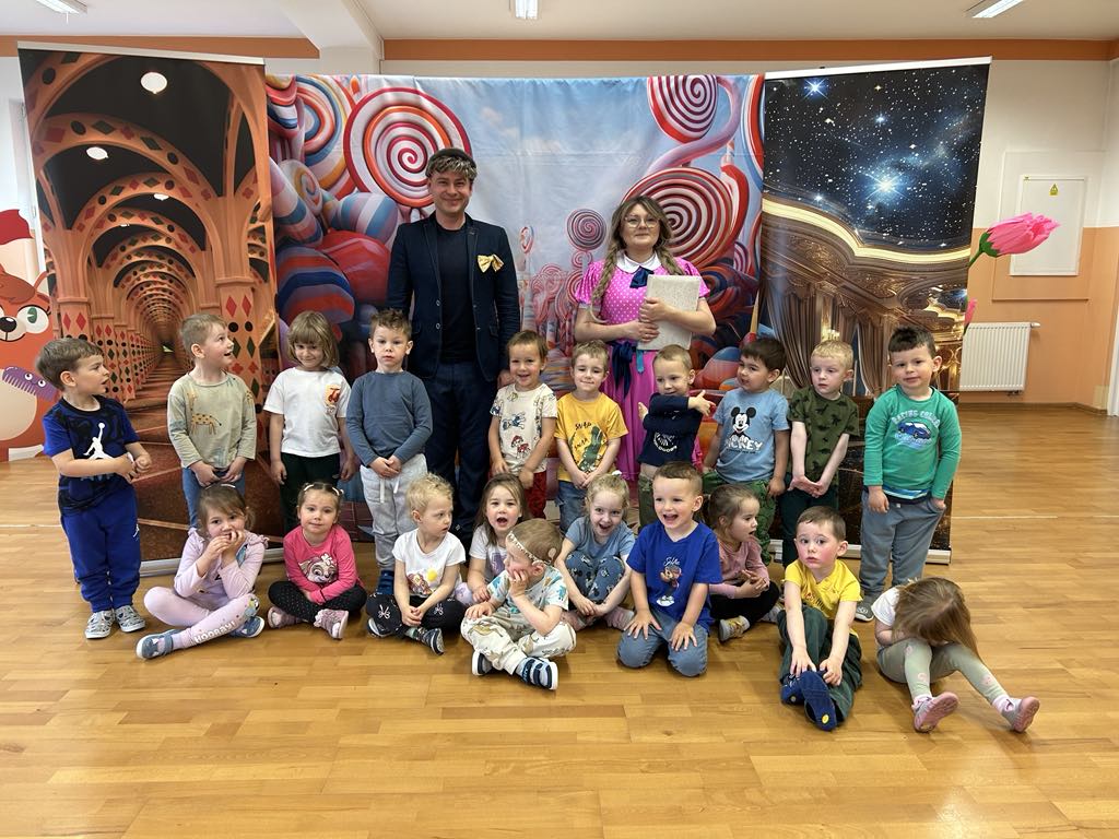 20 maja odwiedzili nas aktorzy ze Studia Teatralnego Krak ArtBis, którzy przygotowali dla przedszkolaków wyjątkową niespodziankę – interaktywny teatrzyk „Księga marzeń”. Przedstawienie okazało się niezwykle angażujące – dzieci miały okazję nie tylko oglądać, ale również aktywnie uczestniczyć w spektaklu wspólnie przeżywając teatralne przygody. Aktorzy zadbali o to, by każdy maluch poczuł się częścią tej magicznej opowieści – dzieci miały także okazję wykonać kilka zadań przygotowanych specjalnie dla nich przez artystów. Wspólne śpiewanie, rozwiązywanie zagadek czy ruchowe wyzwania wywołały wiele uśmiechów i pozytywnych emocji.