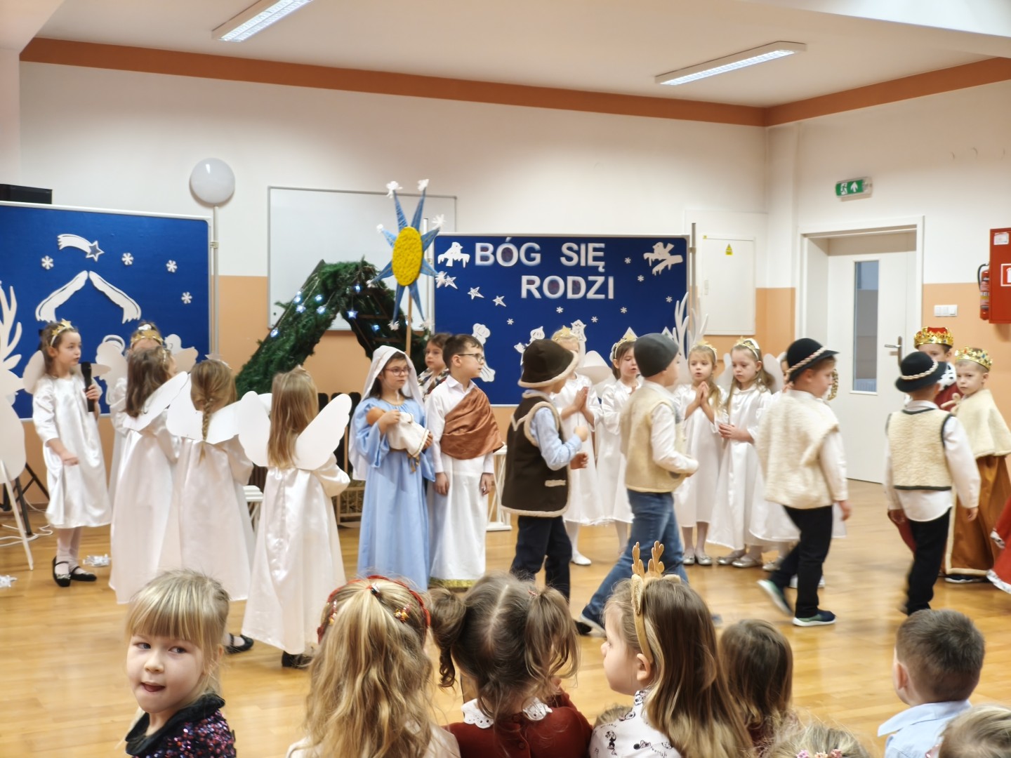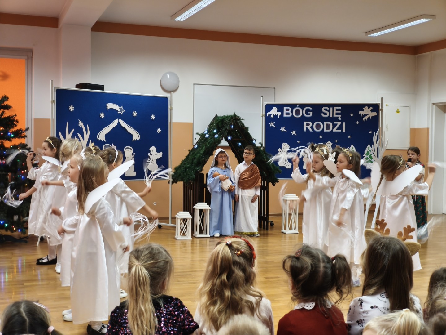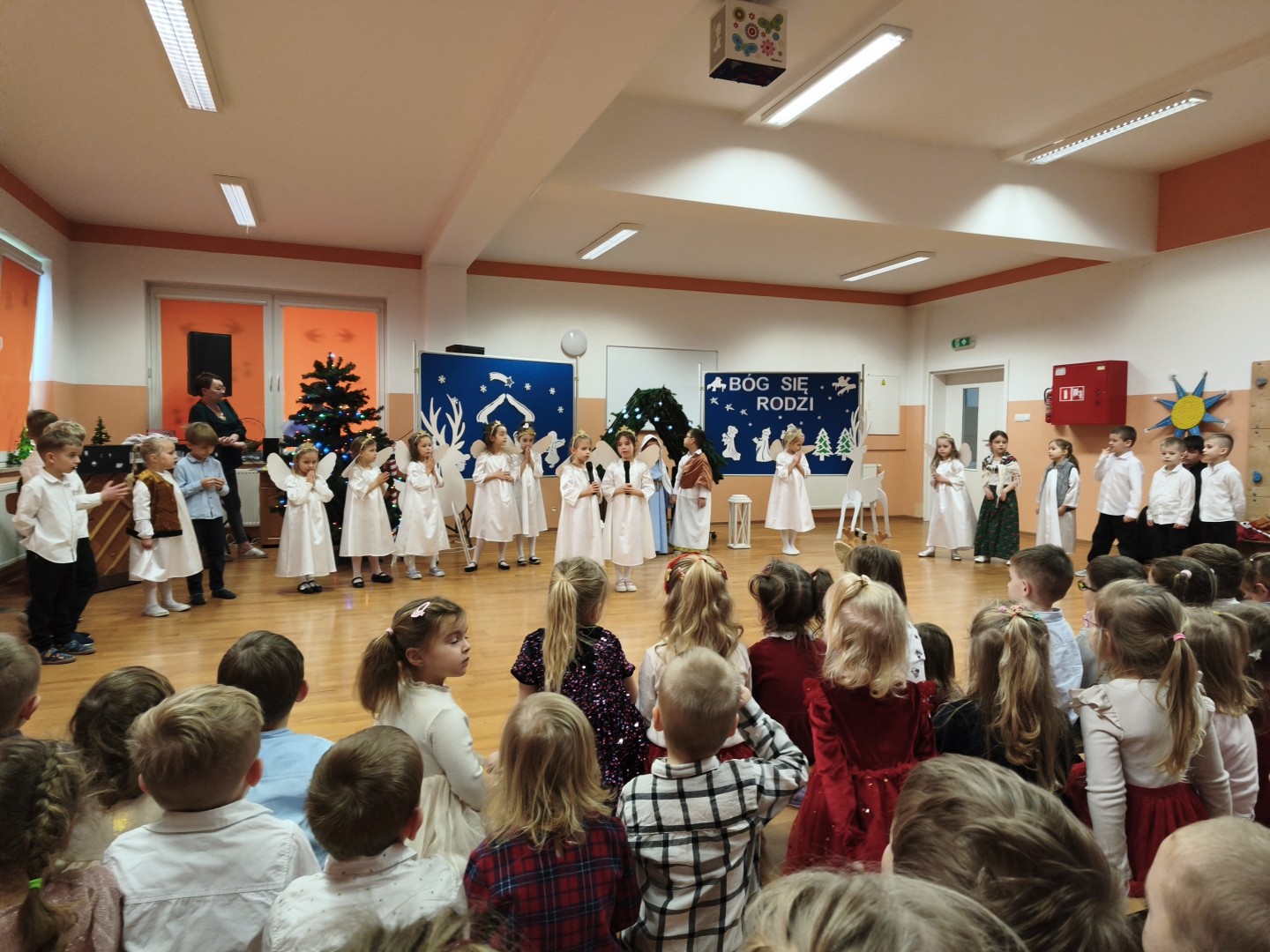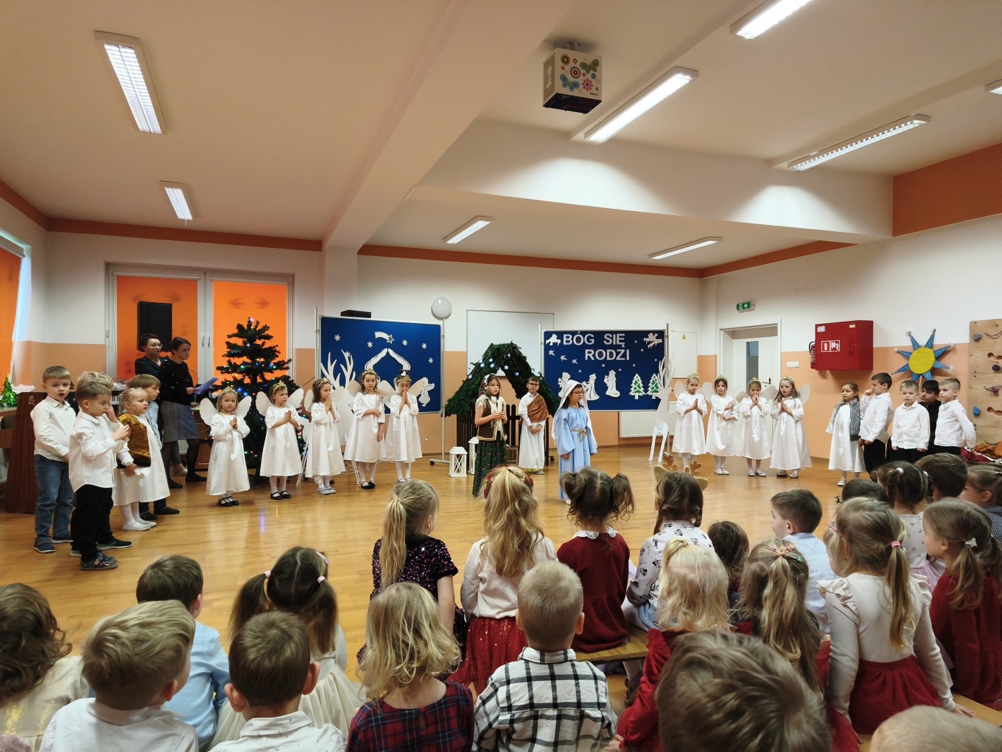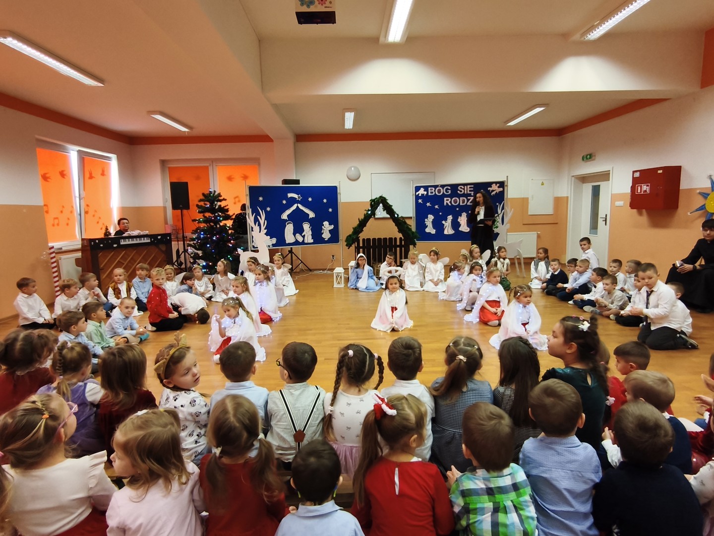 Dnia 19.12.2025 r. w naszym przedszkolu odbyła się Wigilia Bożego Narodzenia. Tradycyjnie uroczystość rozpoczęła się od Jasełek wystawionych przez dzieci. W salach przedszkolnych przedszkolaki dzieliły się opłatkiem, składały sobie życzenia, a następnie zasiadły do pięknie przystrojonych stołów, na których czekał świąteczny obiad. Wspólne kolędowanie wprawiło wszystkich w uroczysty i świąteczny nastrój.