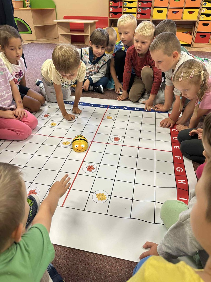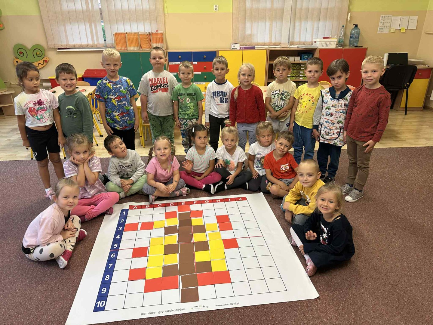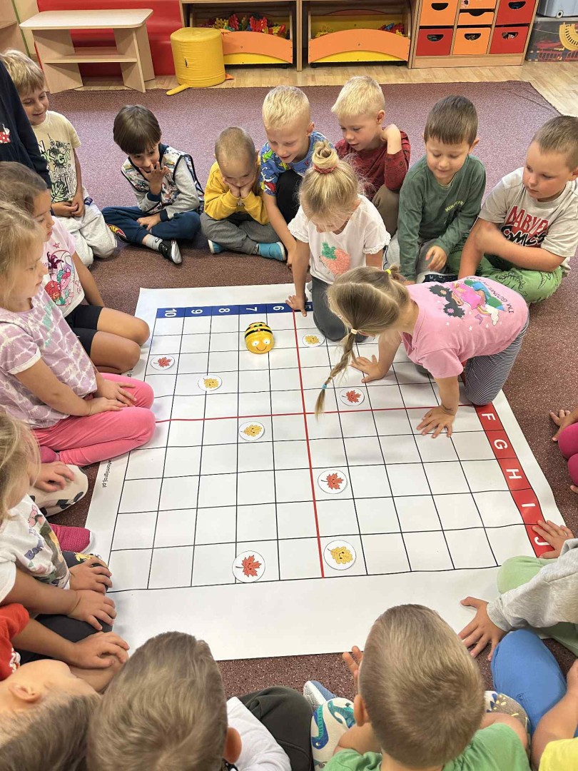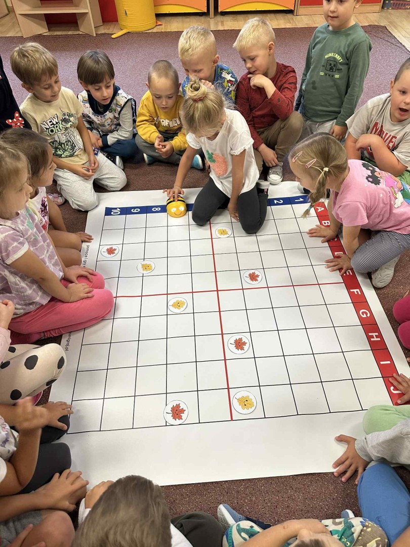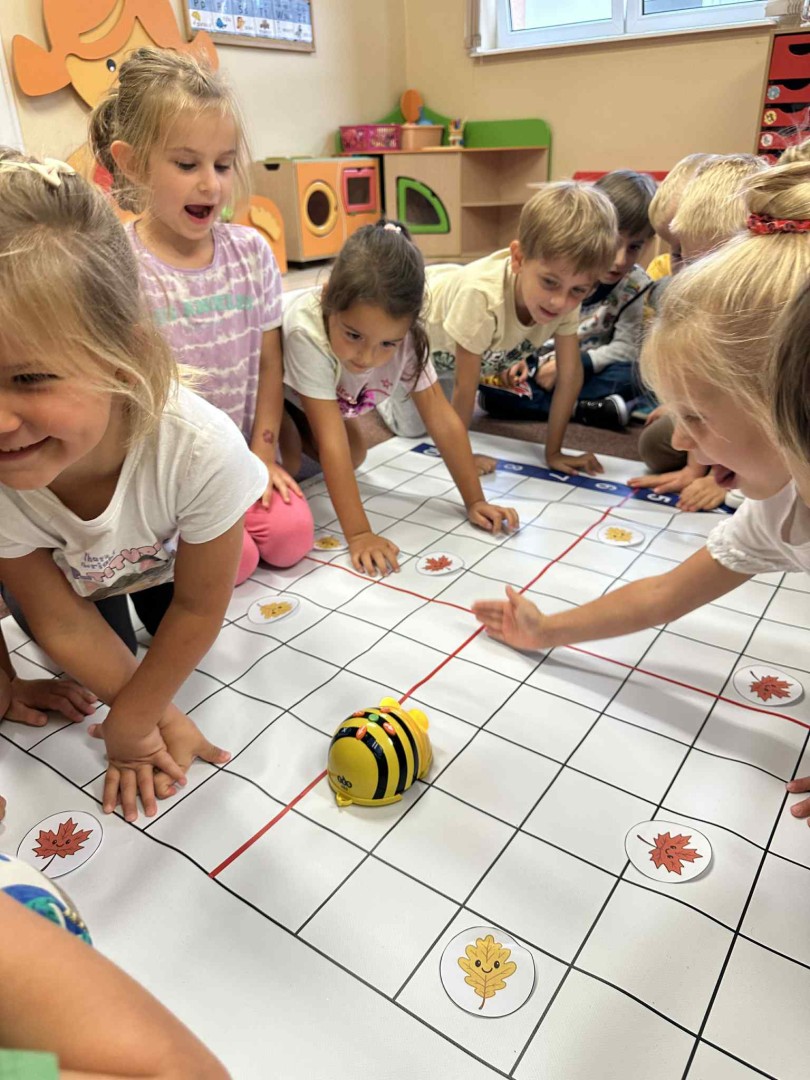 Dnia 23 września 2025 dzieci z grupy 3 powitały Panią Jesień. To wyjątkowa pora roku, gdyż pełna jest różnych barw, zapachów i widocznych zmian w przyrodzie. Jesień to czas spadających liści, dojrzewających owoców, kasztanów i żołędzi, a także chłodniejszych poranków i coraz krótszych dni. To także czas przygotowań zwierząt i ludzi do zimy. Podczas naszych zajęć w ramach programu pn.: „Kodowanie na dywanie” dzieci dowiedziały się, jakie są charakterystyczne cechy jesieni. Przedszkolaki rozmawiały o zmieniających się kolorach liści, migracji ptaków i o przygotowaniach przyrody do zimy. Wspólnie zakodowały także jesienne drzewo i bawiły się pszczółką, która zbierała jesienne liście według ich wskazówek.