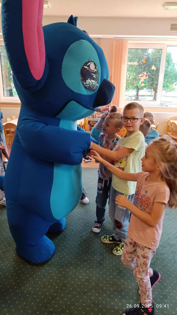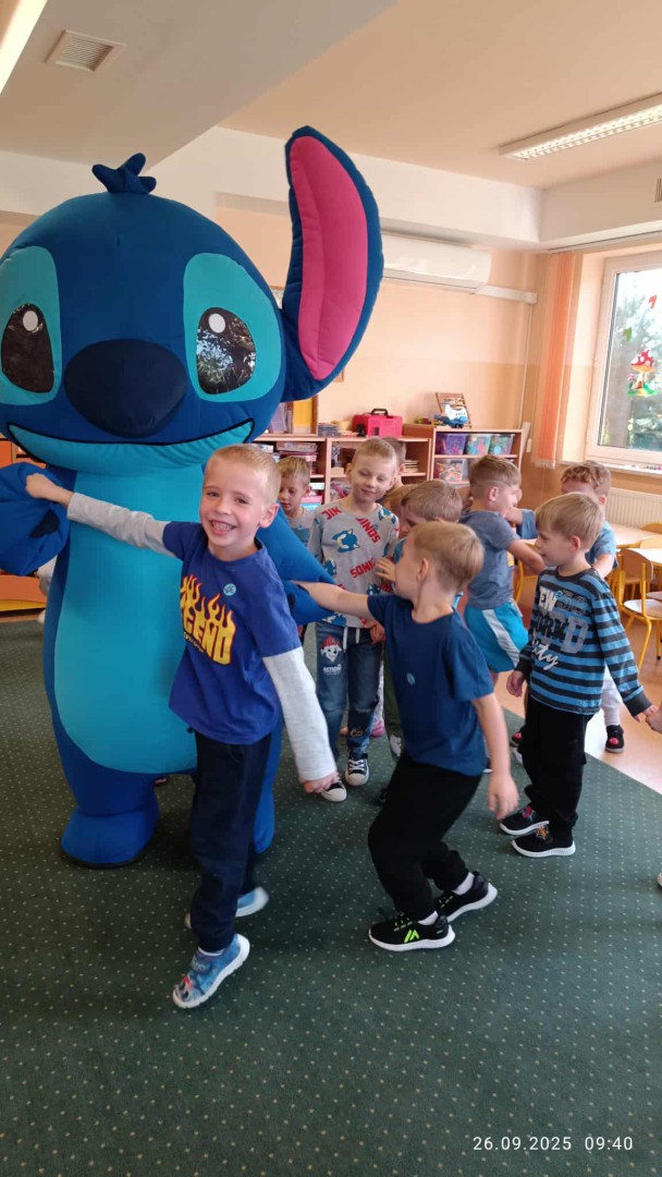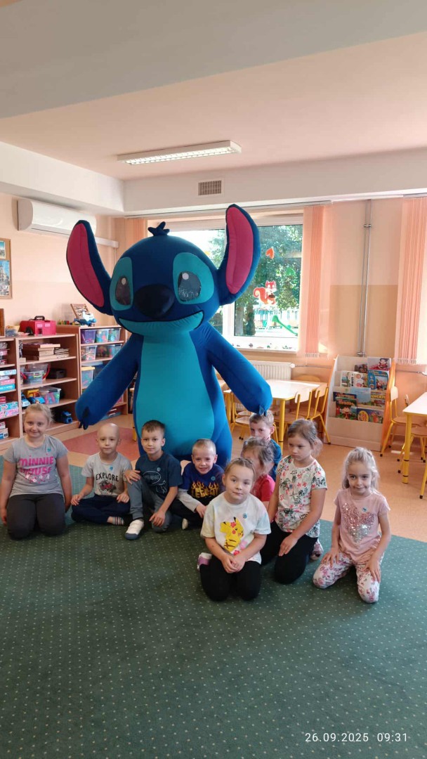 W dniu 26 września grupa 6 gościła maskotkę Sticha. Były tańce, zabawy, wspólne zdjęcia oraz demonstracja w jaki sposób nadmuchujemy maskotkę i każde dziecko miało możliwość zostać Stichem. Na koniec spotkania dzieci zostały obdarowane prezentami i dyplomami. Był to bardzo radosny i atrakcyjny czas z maskotką.