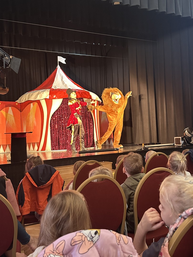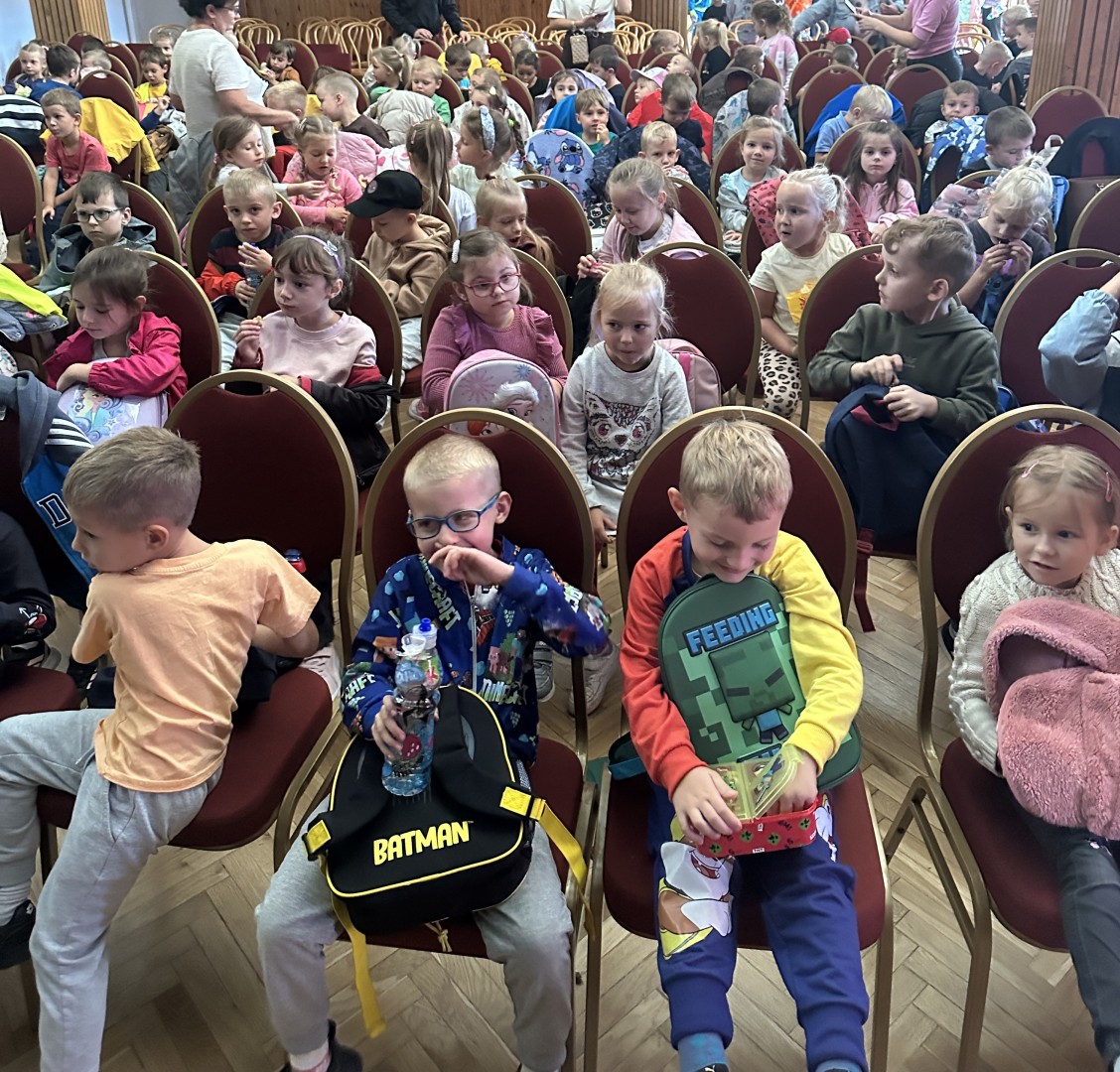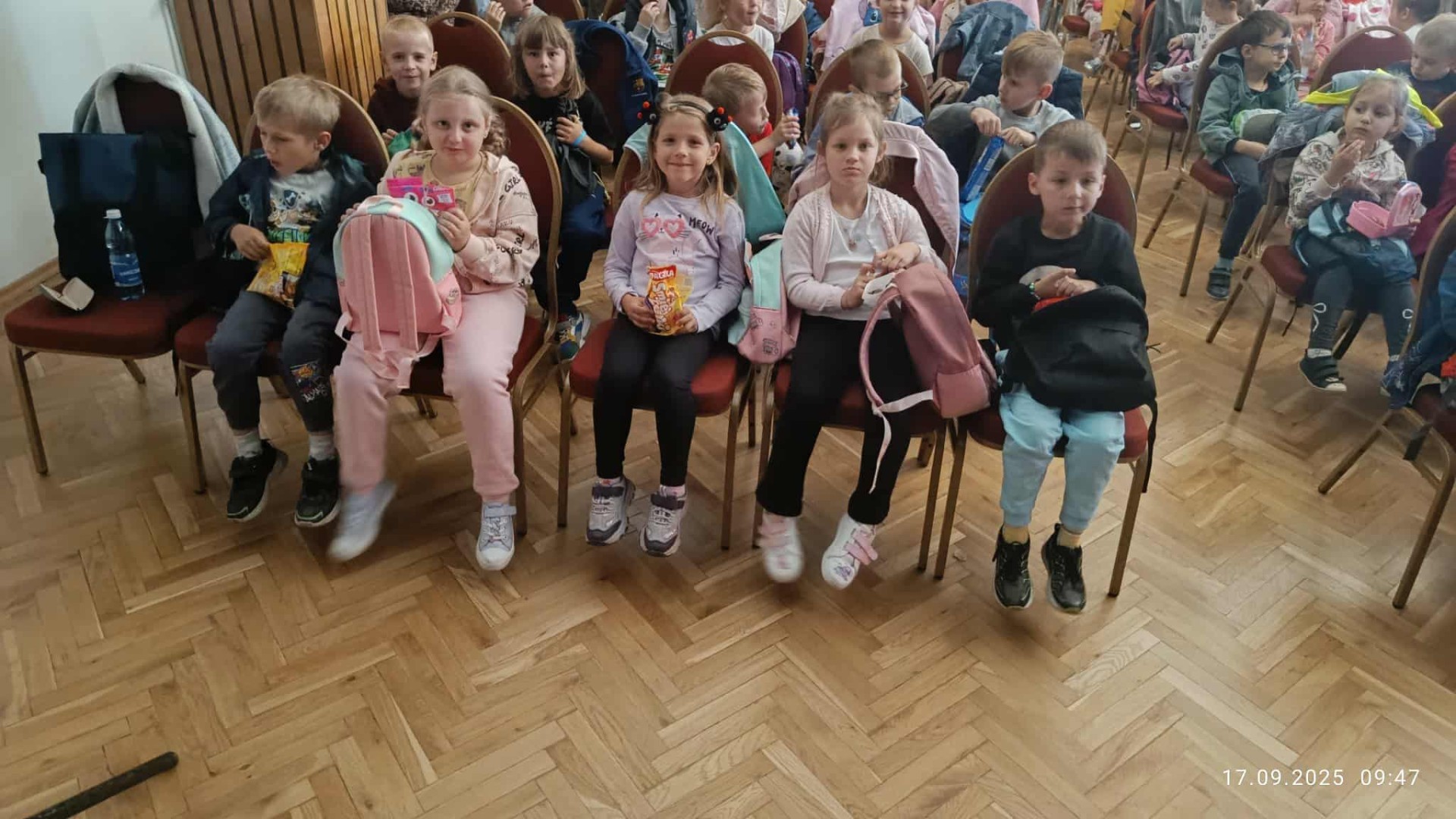 Dnia 17.09.2025r. przedszkolaki z grup starszych wybrały się do Domu Kultury w Wiśniowej, aby obejrzeć występ Cirkus Show. Dzieci z ogromnym entuzjazmem śledziły niezwykły pokaz akrobatycznych sztuczek. Widowisko pełne kolorów, energii i radości dostarczyło wszystkim niezapomnianych wrażeń. Uśmiechy na twarzach najmłodszych były najlepszym dowodem, że to był naprawdę udany wyjazd!