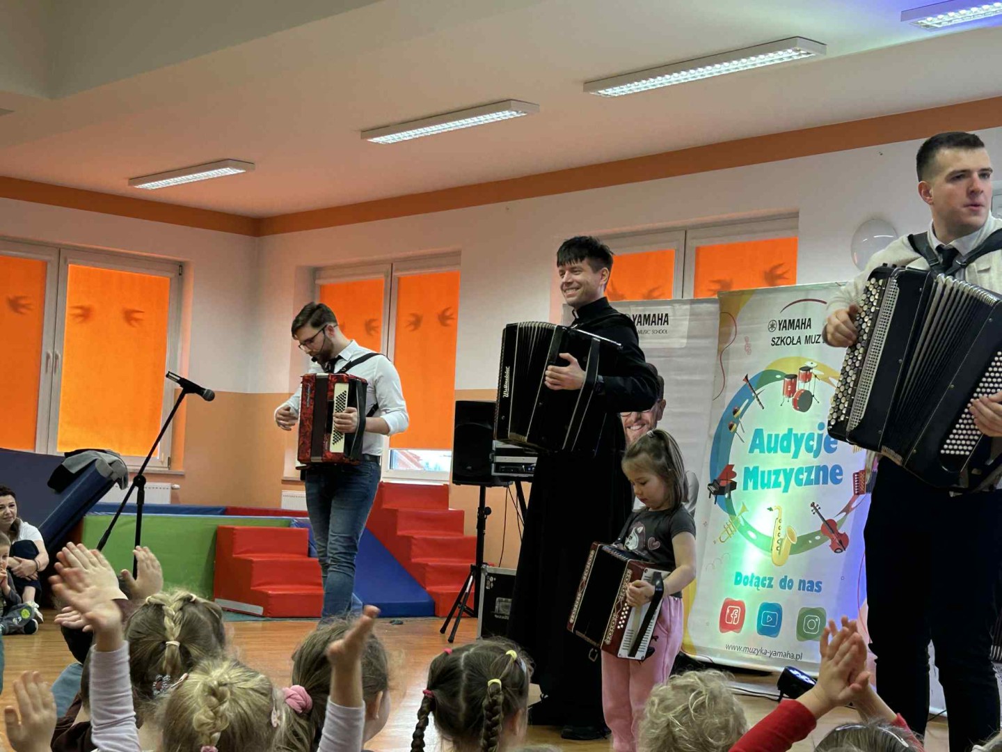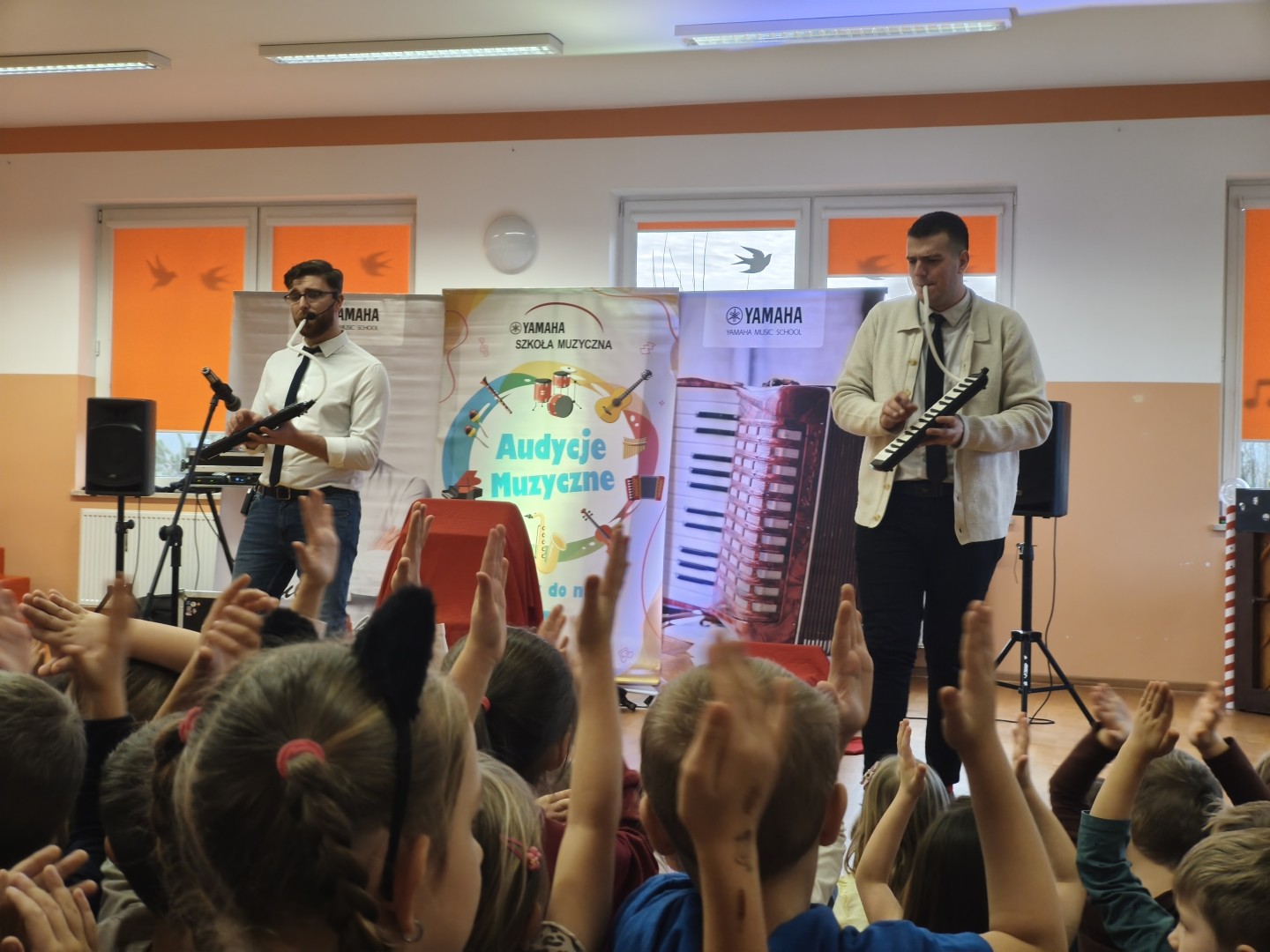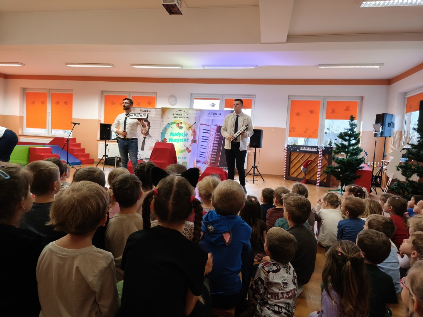 Dnia 10.12.2025r. w naszym przedszkolu odbyło się kolejne spotkanie z muzykami ze Szkoły Muzycznej Yamaha. Nasi goście porwali wszystkich do wesołej zabawy, a dzieci poznały takie instrumenty jak: akordeon, melodyka. Spotkanie przebiegło w radosnej i miłej atmosferze.
