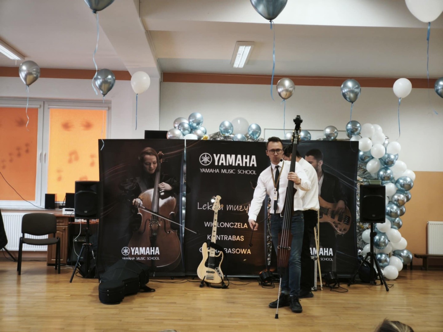 Przedszkolaki miały wyjątkową okazję spotkać muzyków ze Szkoły Muzycznej Yamaha i poznać instrumenty takie jak: wiolonczela, kontrabas i gitara basowa. Dzieci mogły z bliska obserwować, jak grają muzycy, a także posłuchać pięknych dźwięków na żywo. Spotkanie wzbudziło w maluchach dużo radości, ciekawości i zachwytu nad muzyką.